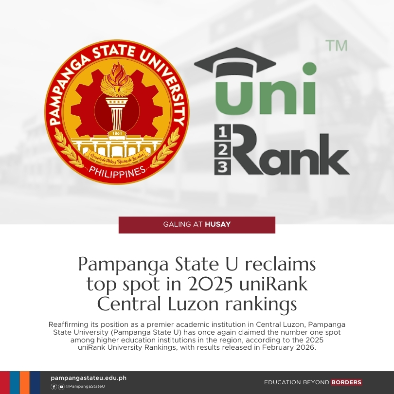 Reaffirming its position as a premier academic institution in Central Luzon, Pampanga State University (Pampanga State U) has once again claimed the number one spot among higher education institutions in the region, according to the 2025 uniRank University Rankings, with results released in February 2026.
