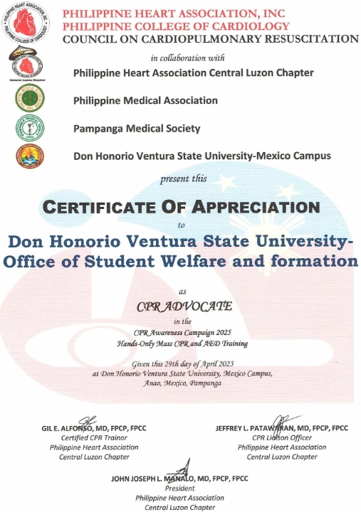 - PampangaStateU received Certificate of Appreciation from Philippine Heart Association