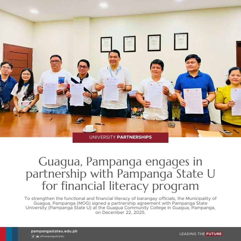 To strengthen the functional and financial literacy of barangay officials, the Municipality of Guagua, Pampanga (MOG) signed a partnership agreement with Pampanga State University (Pampanga State U) at the Guagua Community College in Guagua, Pampanga, on December 22, 2025.