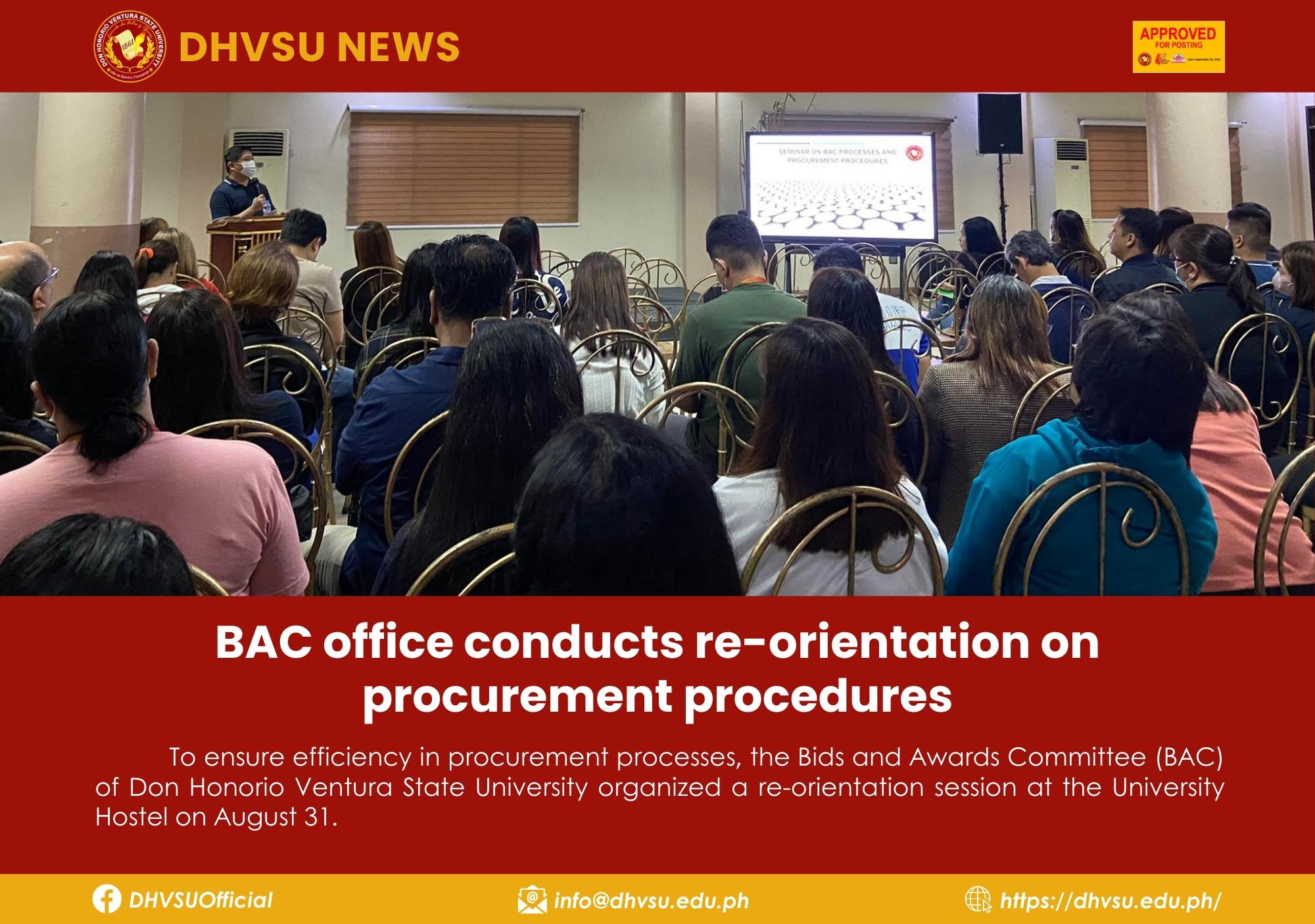 To ensure efficiency in procurement processes, the Bids and Awards Committee (BAC) of Don Honorio Ventura State University organized a re-orientation session at the University Hostel on August 31.