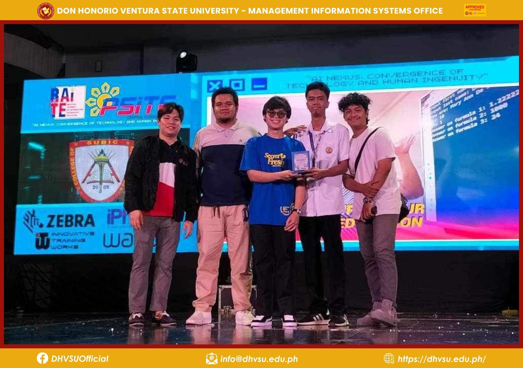 The Don Honorio Ventura State University (DHVSU) - College of Computing Studies (CCS) showcased its skills in the field of Information Technology by garnering two championships and two runners-up awards at the Regional Assembly on Information Technology Education (RAITE) 2023 organized by the Philippine Society of Technology Information Educators (PSITE) Central Luzon held at Angeles University Foundation Sports and Cultural Center on October 20.