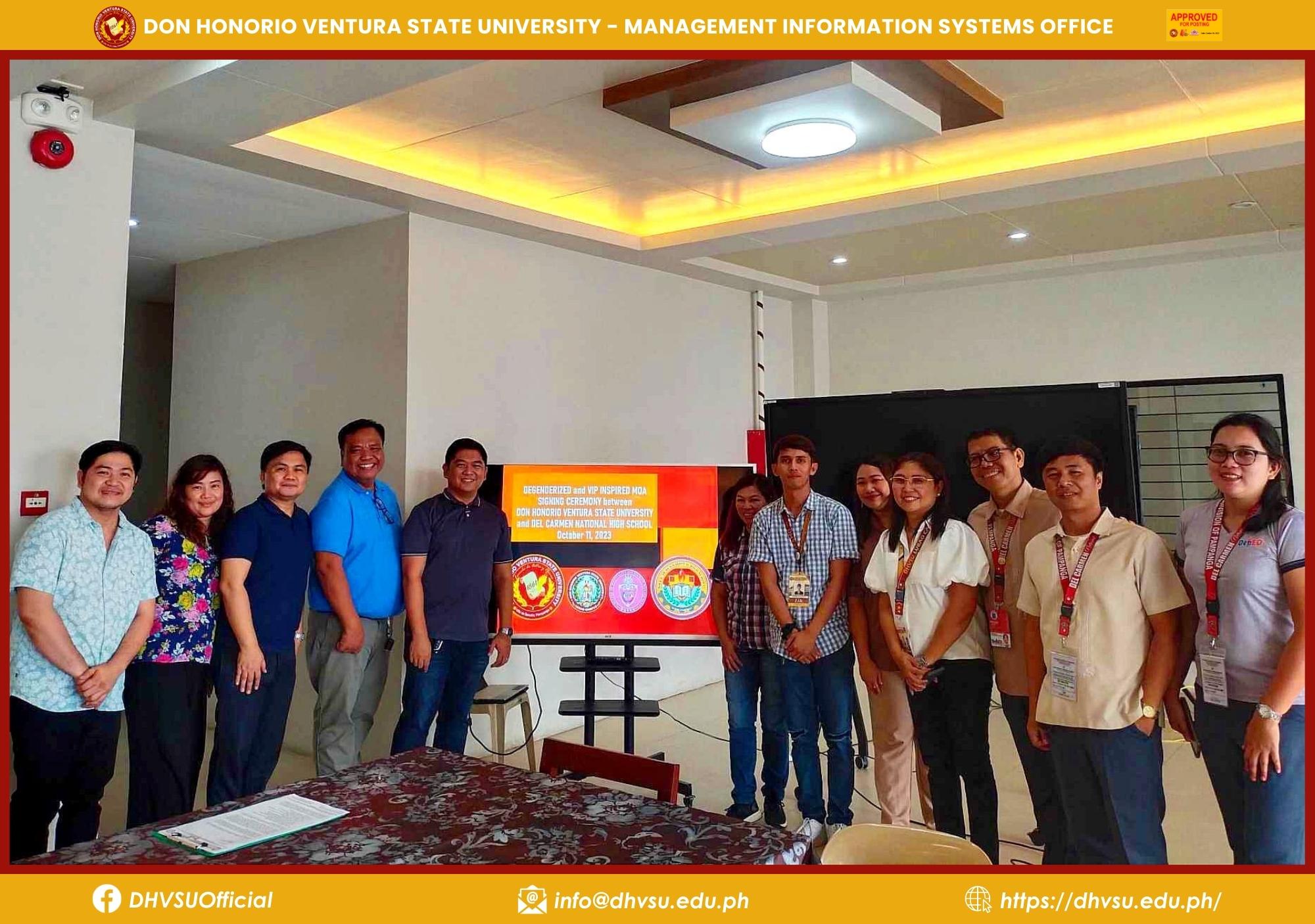 The Memorandum of Agreement signing ceremony took place at DHVSU – Lubao Campus on October 11 with DCNHS, and at Bacolor Campus on October 24 with BABHS and VDCES.
