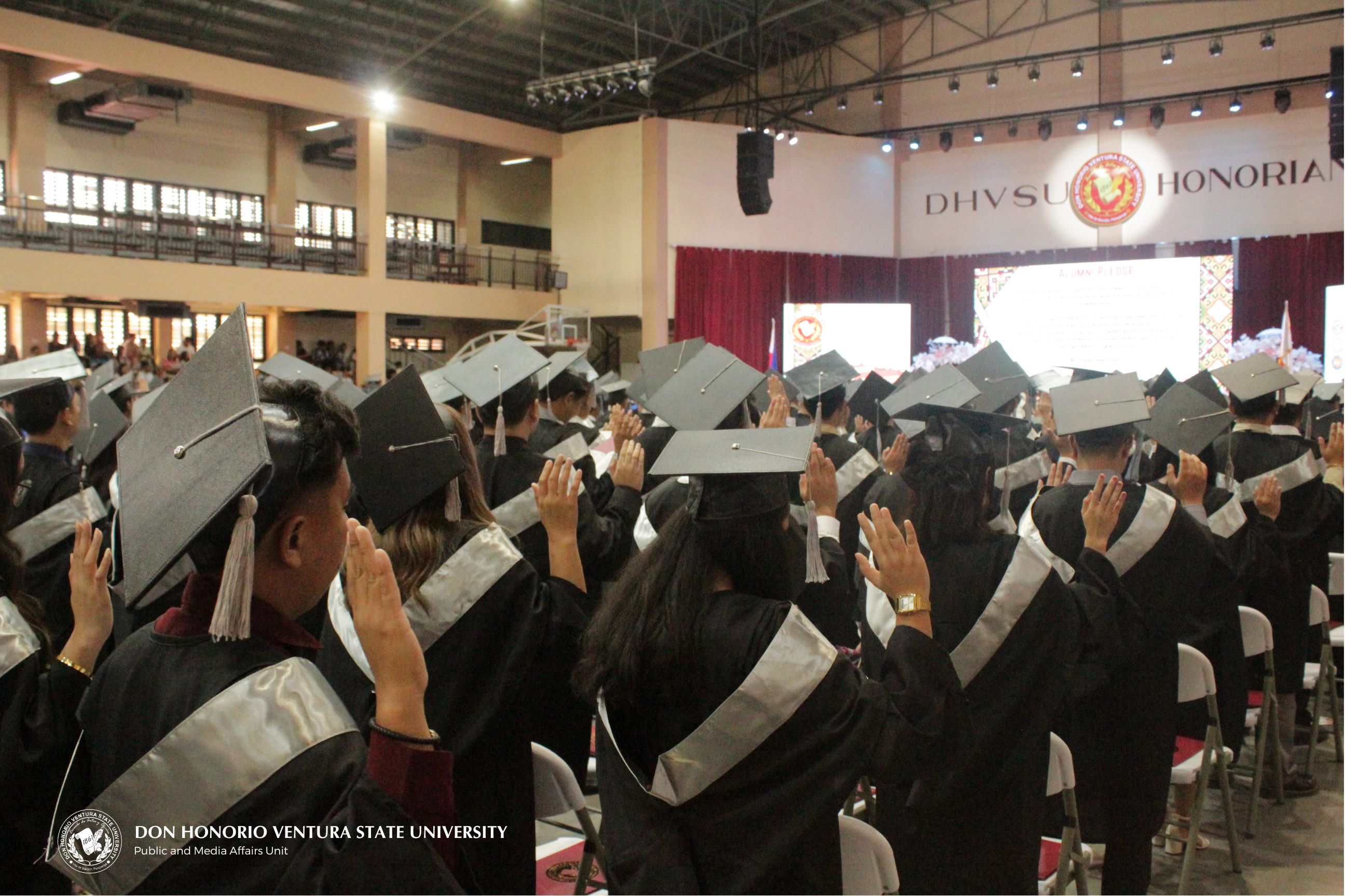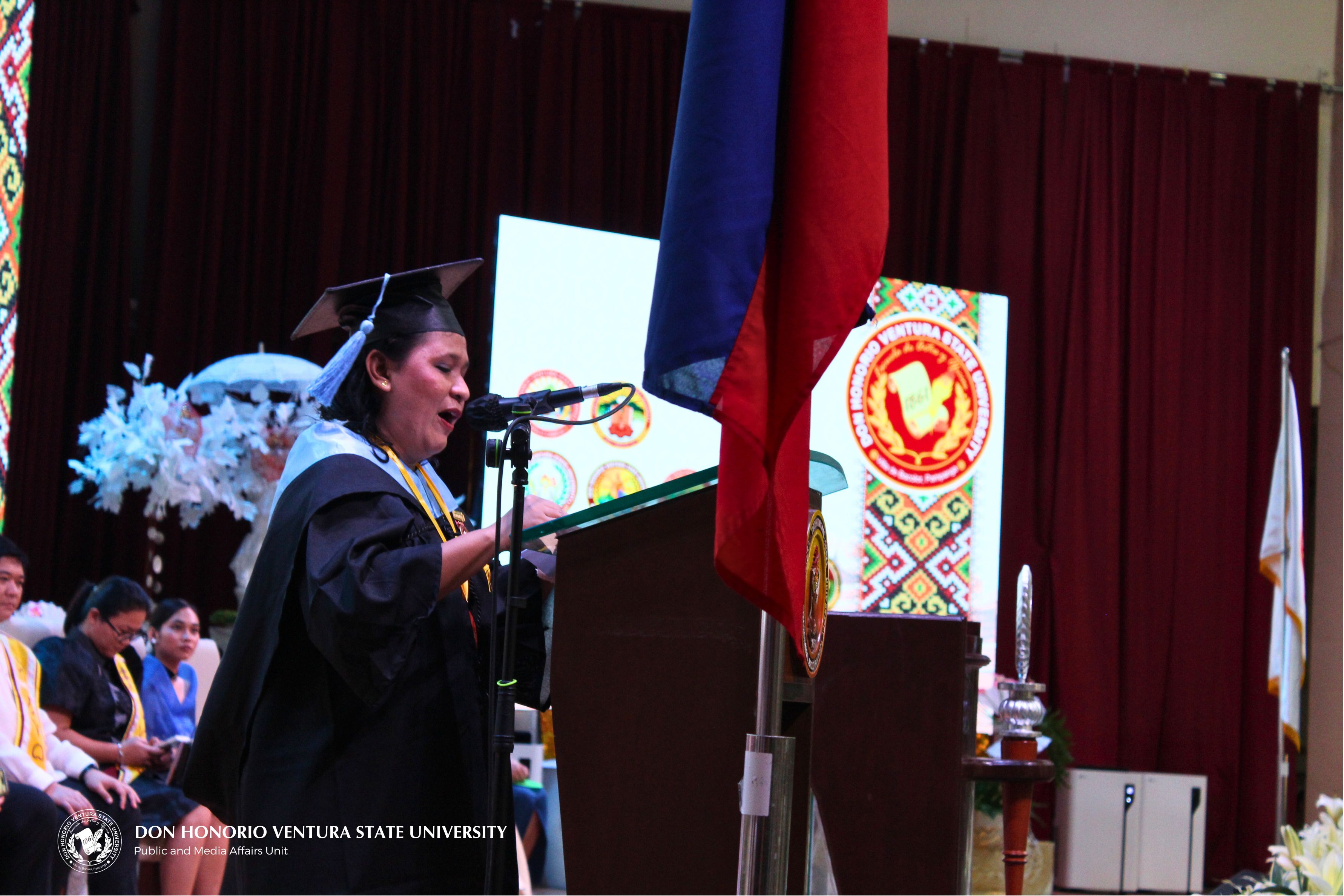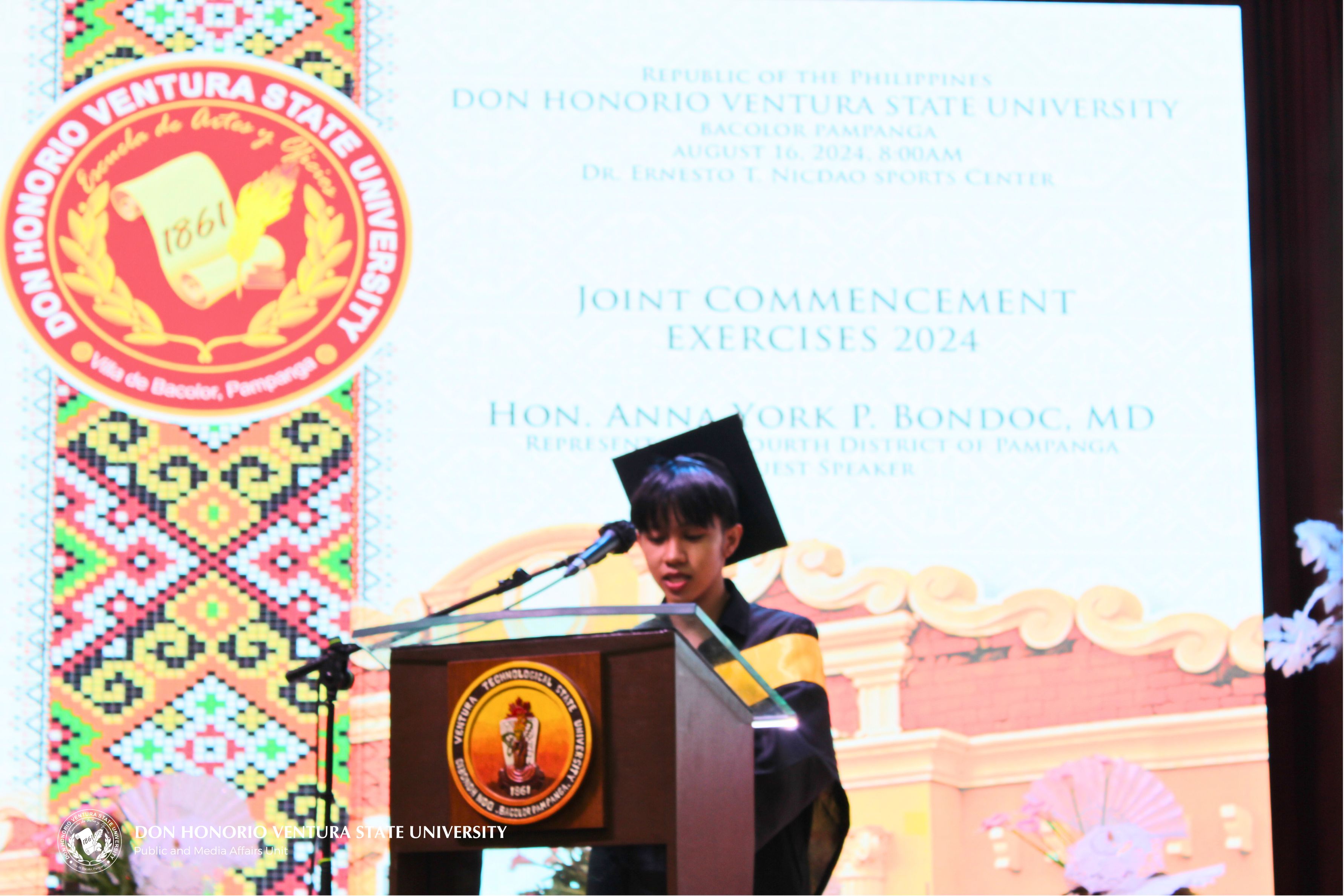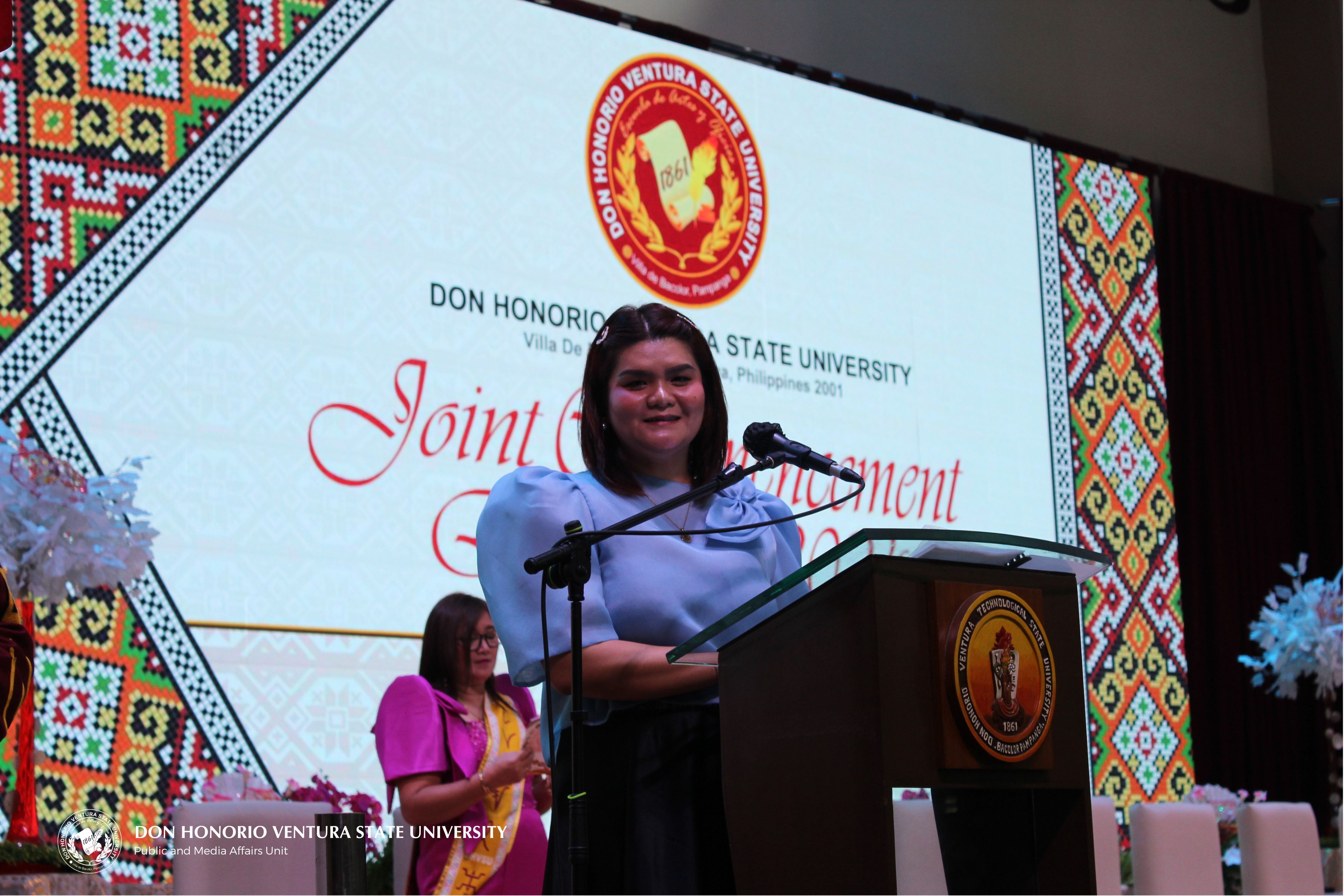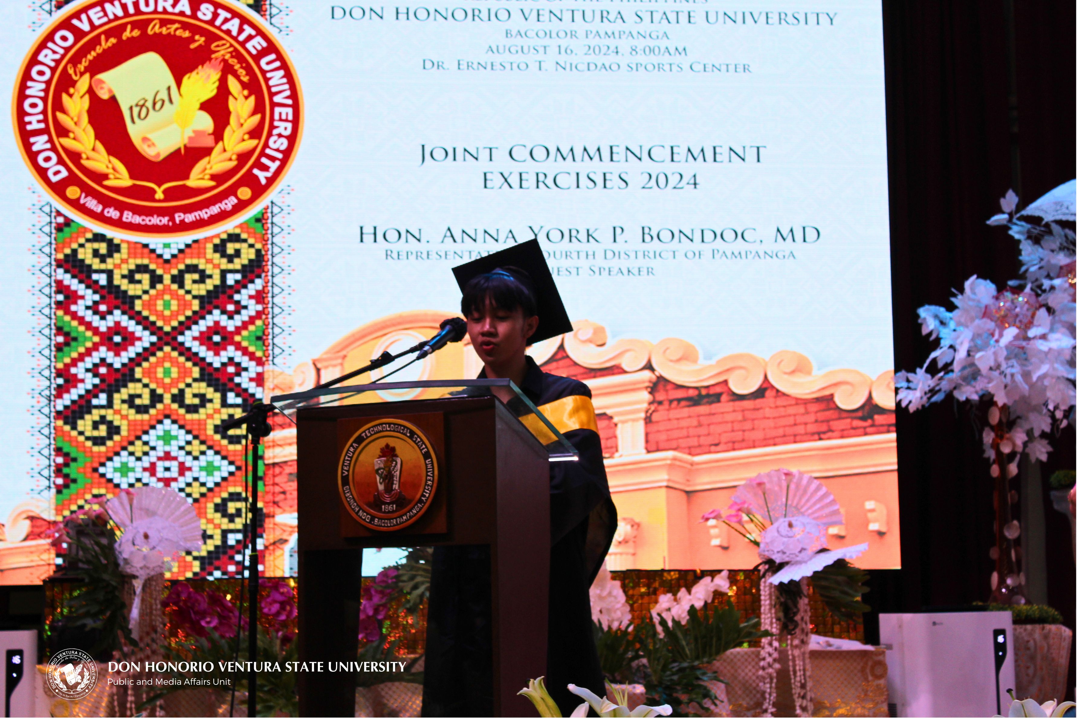 Jerome L. Alipio, Summa Cum Laude of the Bachelor of Secondary Education Major in Filipino, represented the "Talaturus" of DHVSU in his message of gratitude.