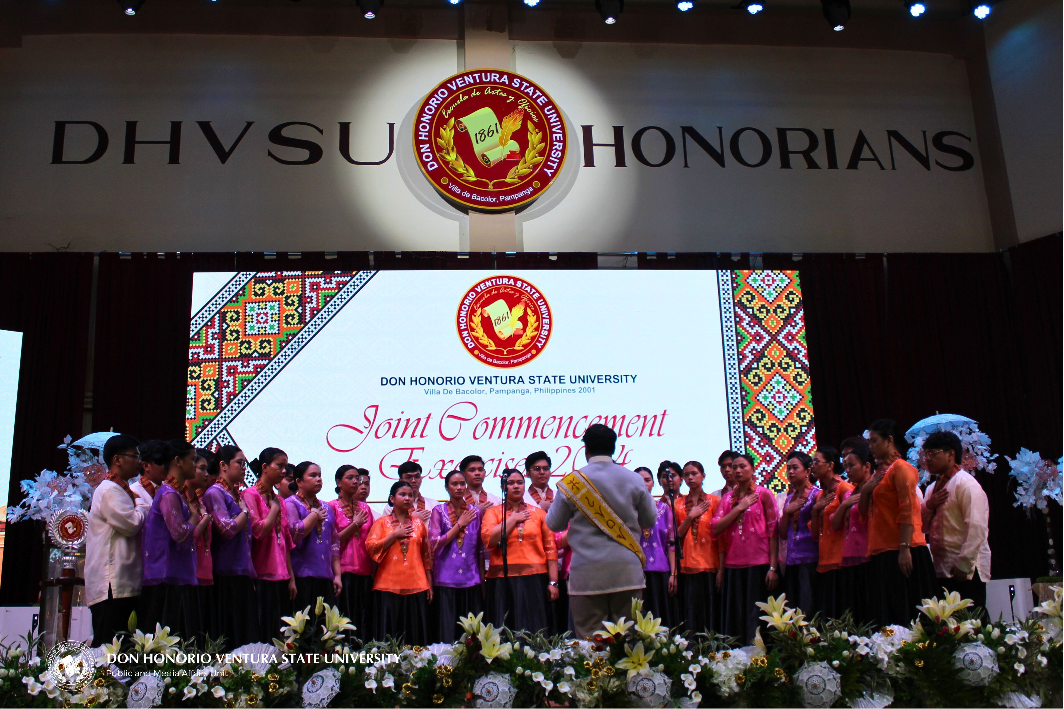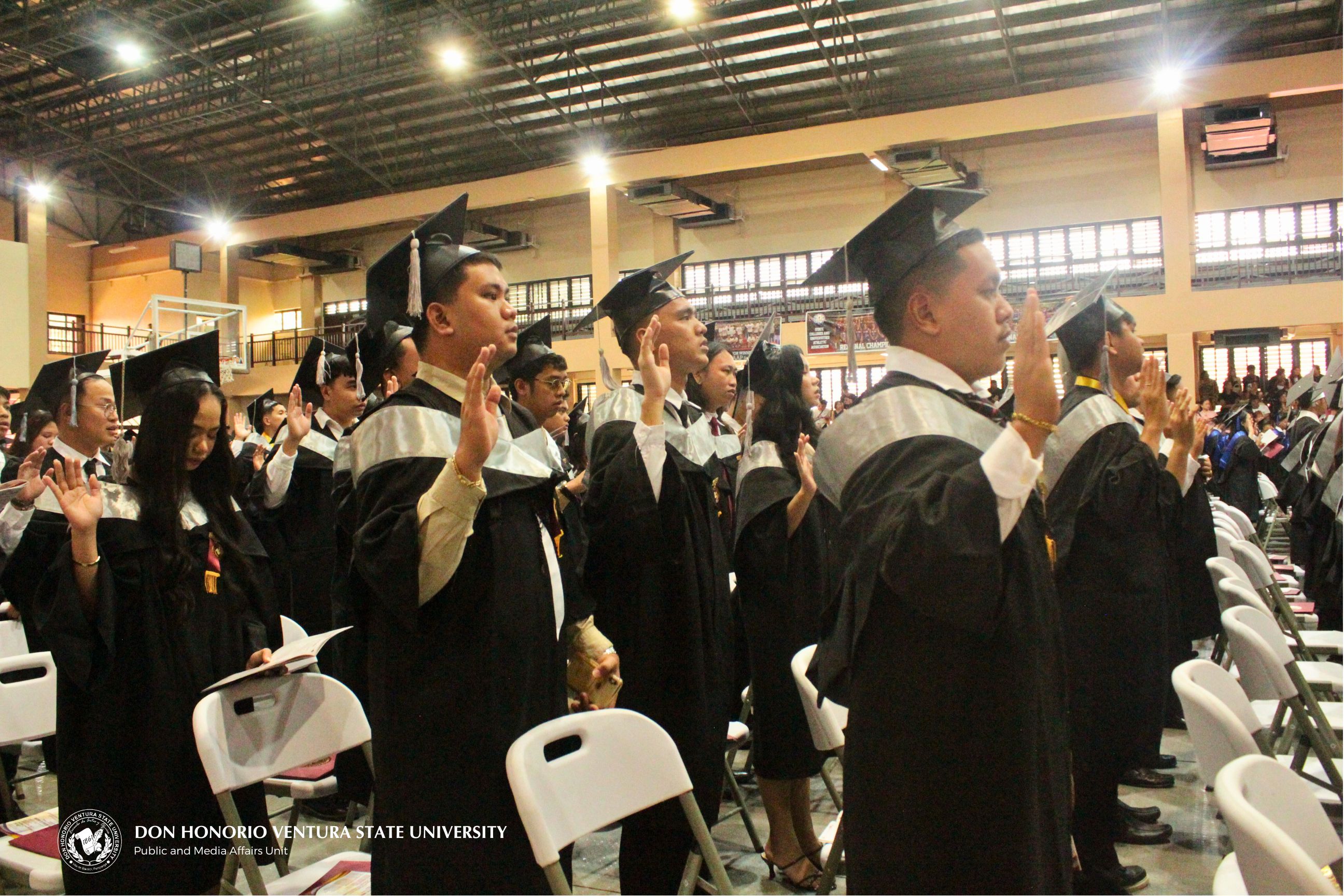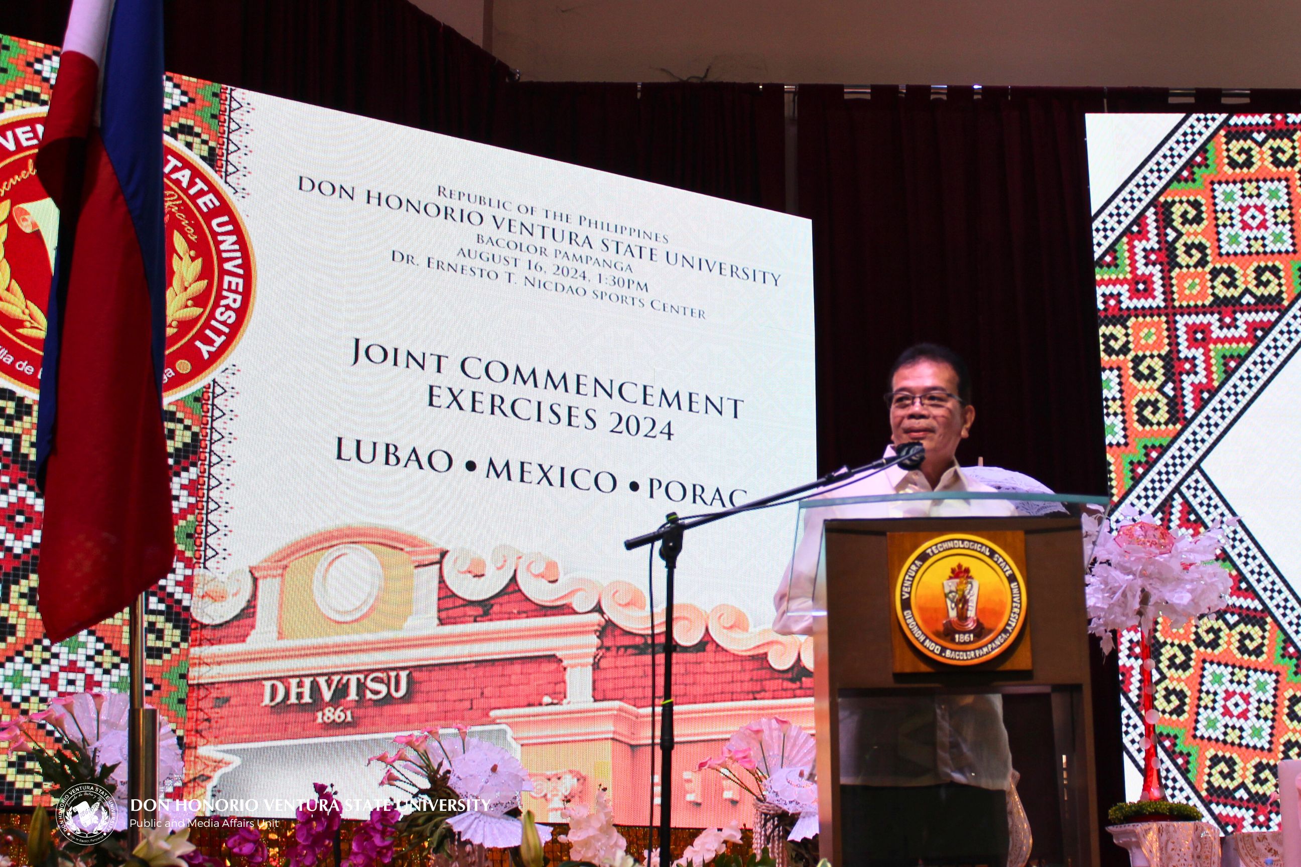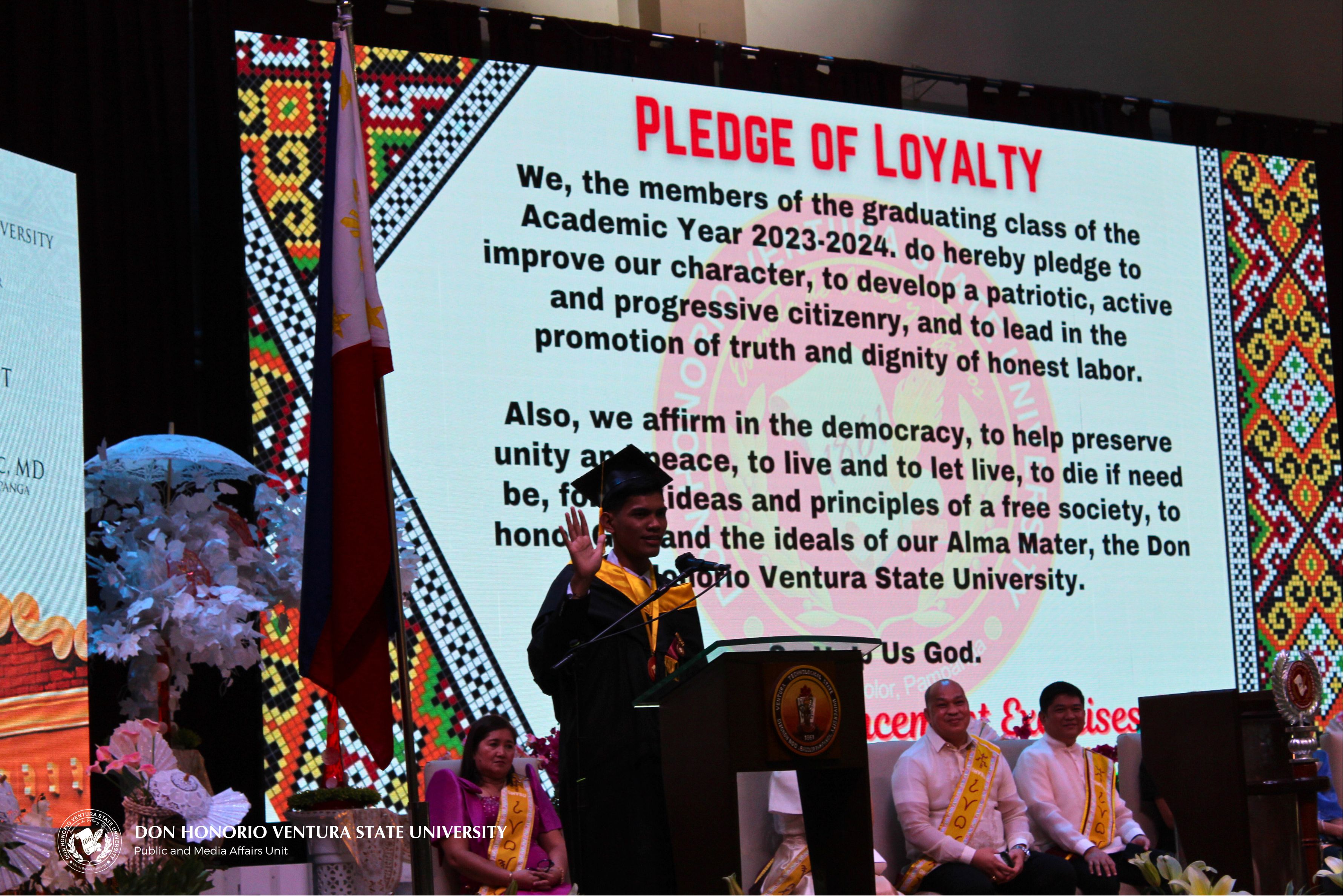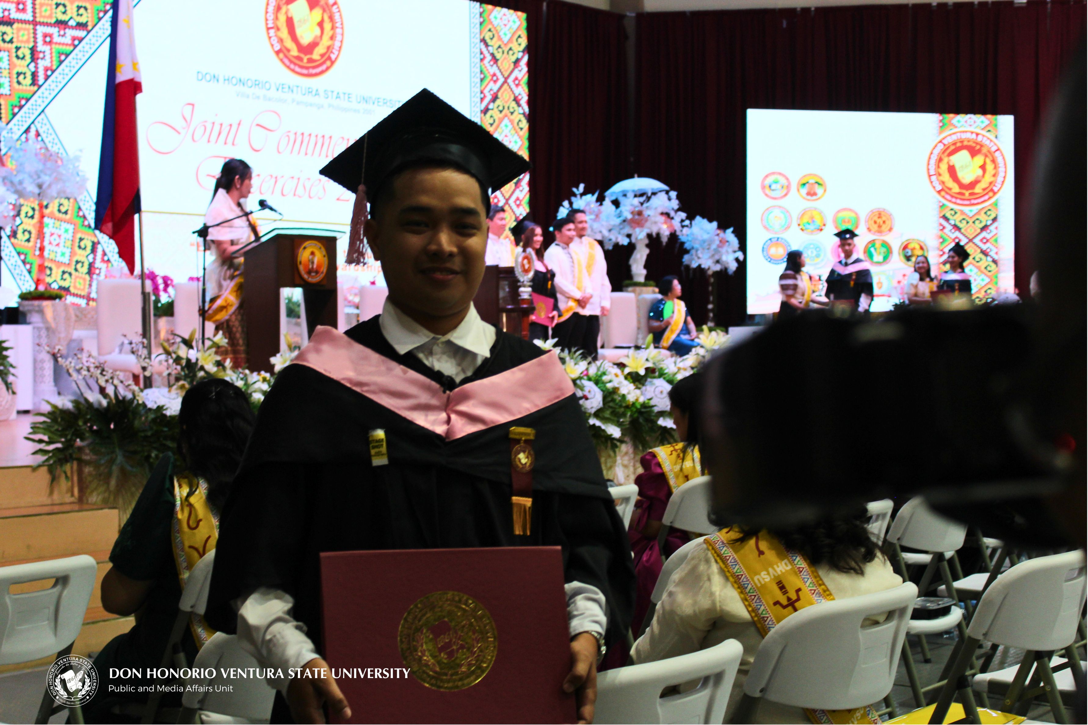 Jerome L. Alipio, Summa Cum Laude of the Bachelor of Secondary Education Major in Filipino, represented the "Talaturus" of DHVSU in his message of gratitude.