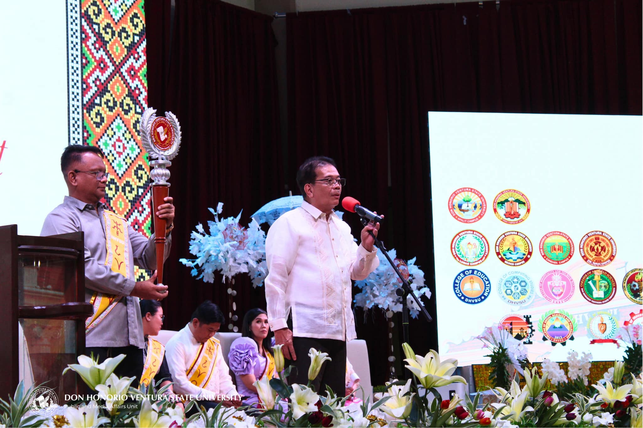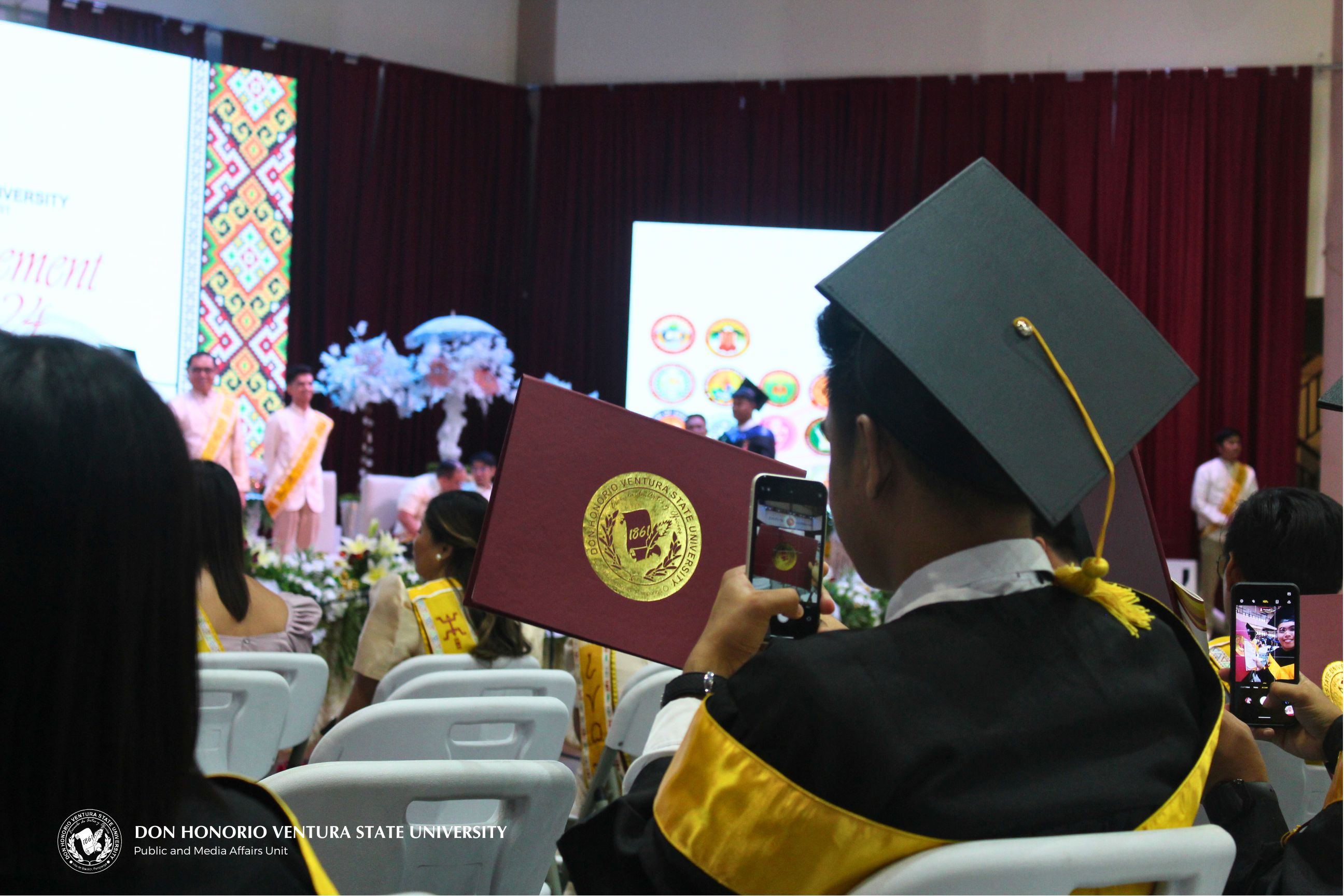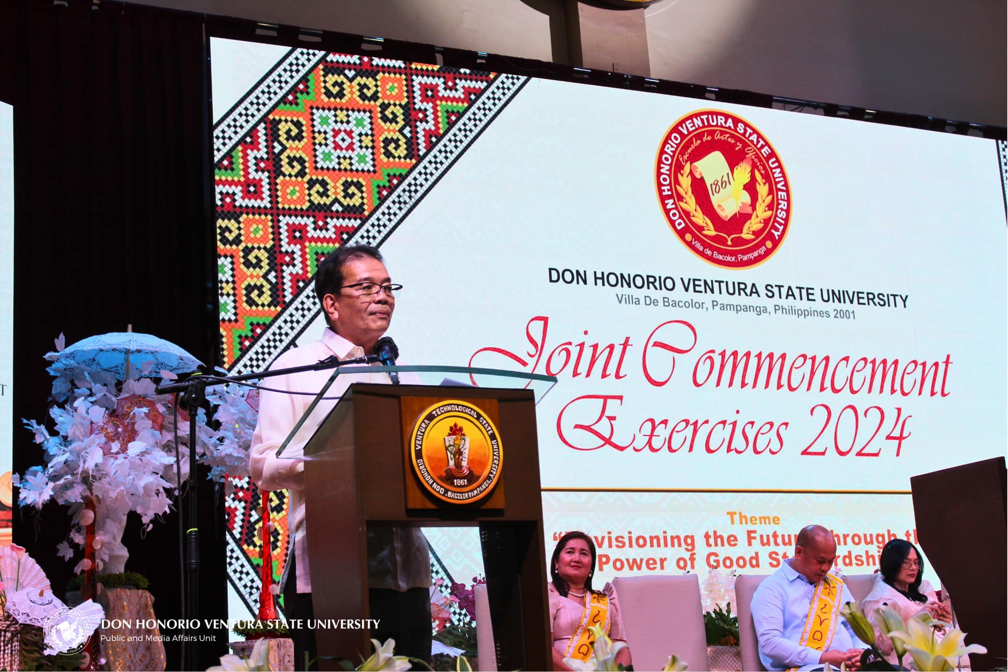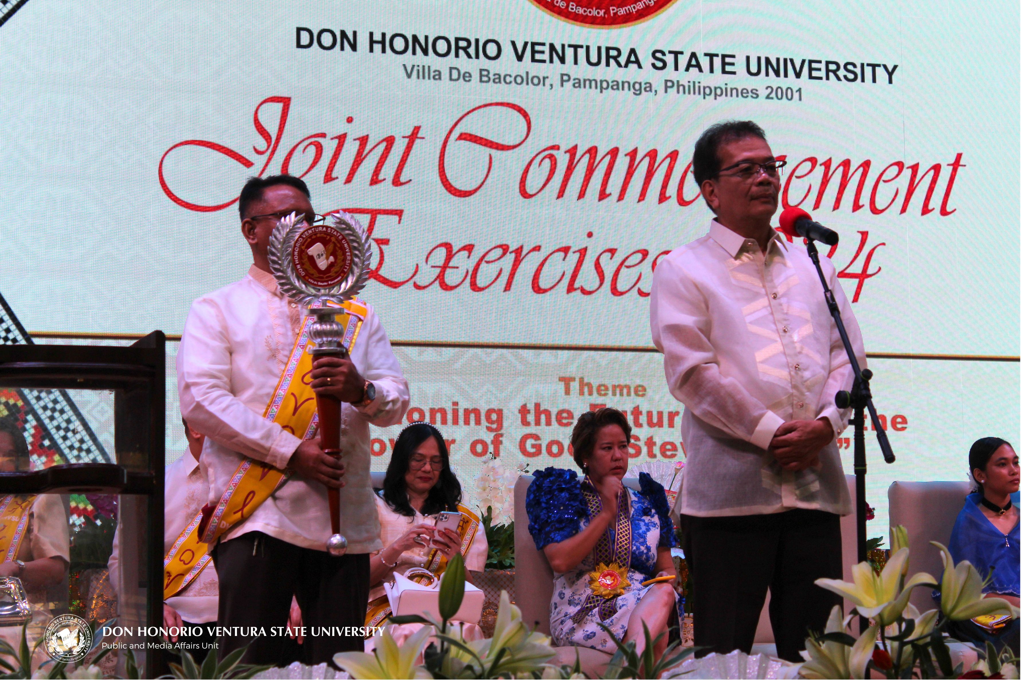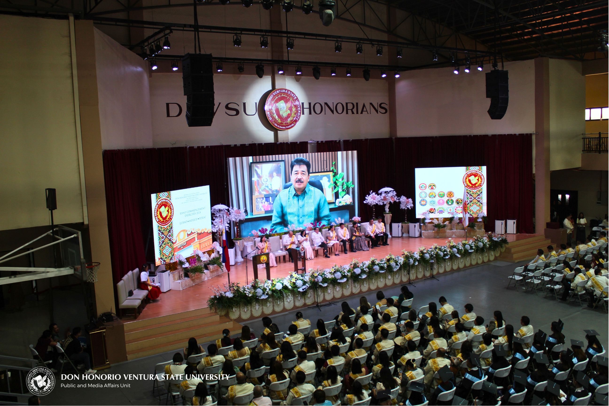 Jerome L. Alipio, Summa Cum Laude of the Bachelor of Secondary Education Major in Filipino, represented the "Talaturus" of DHVSU in his message of gratitude.