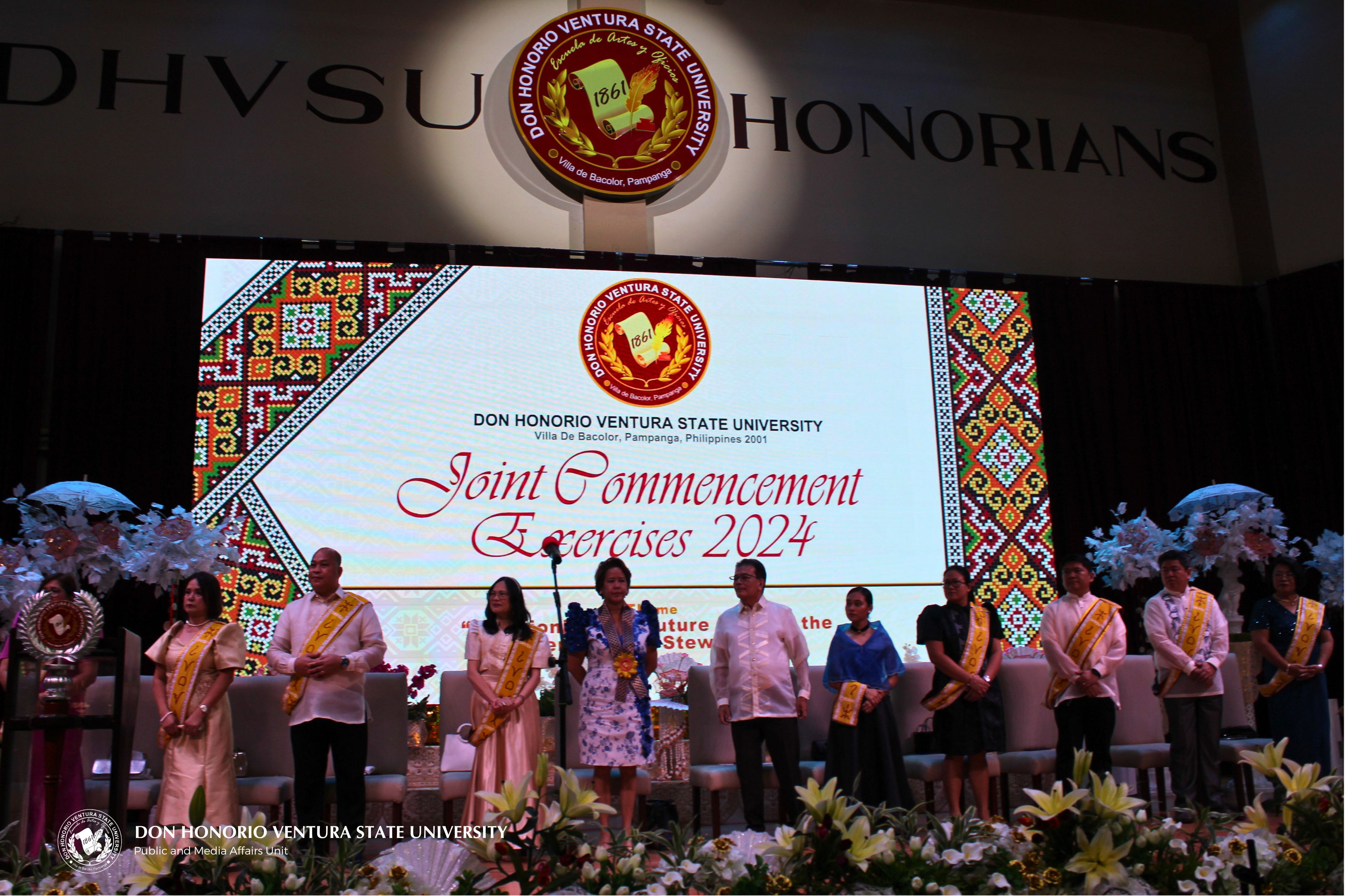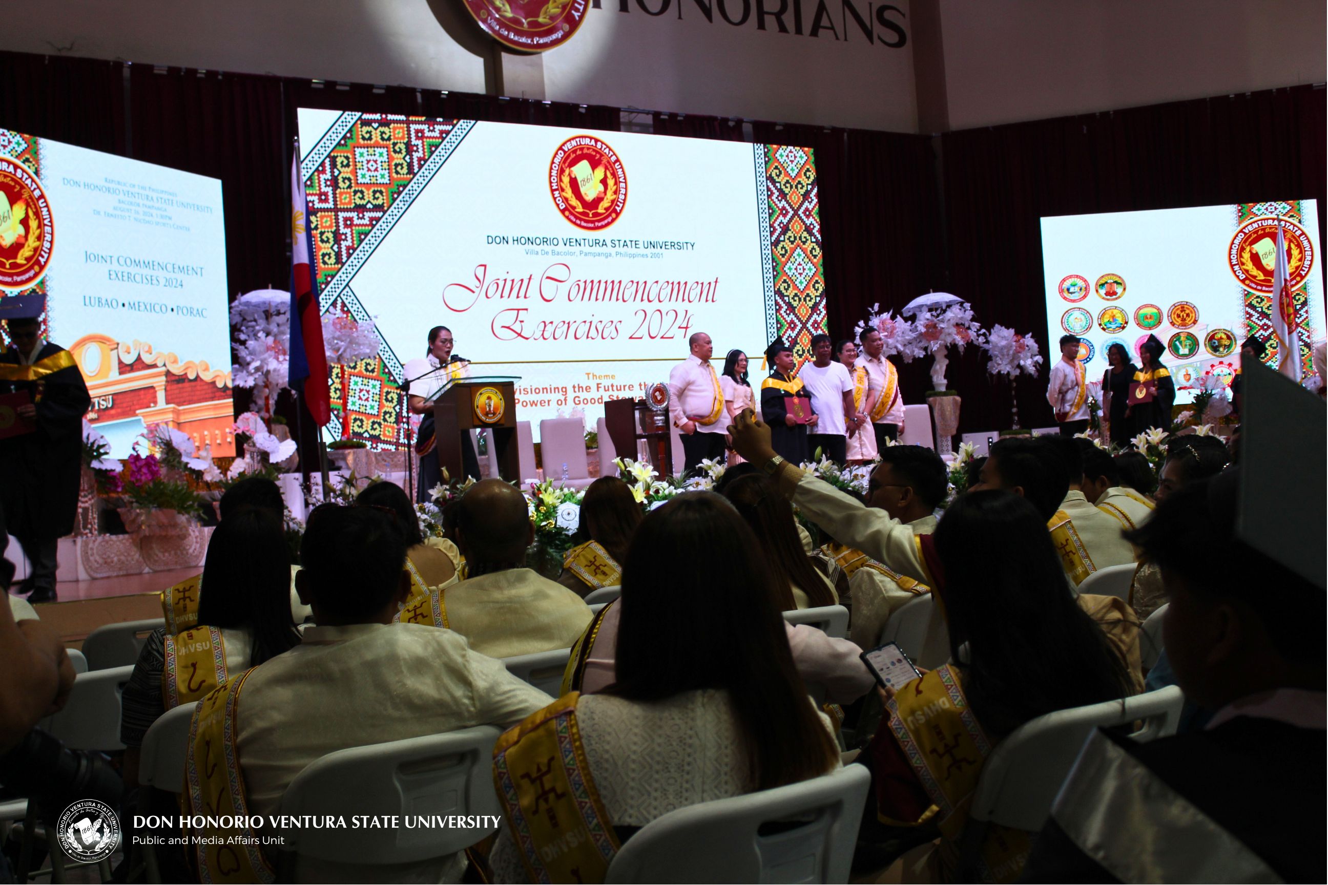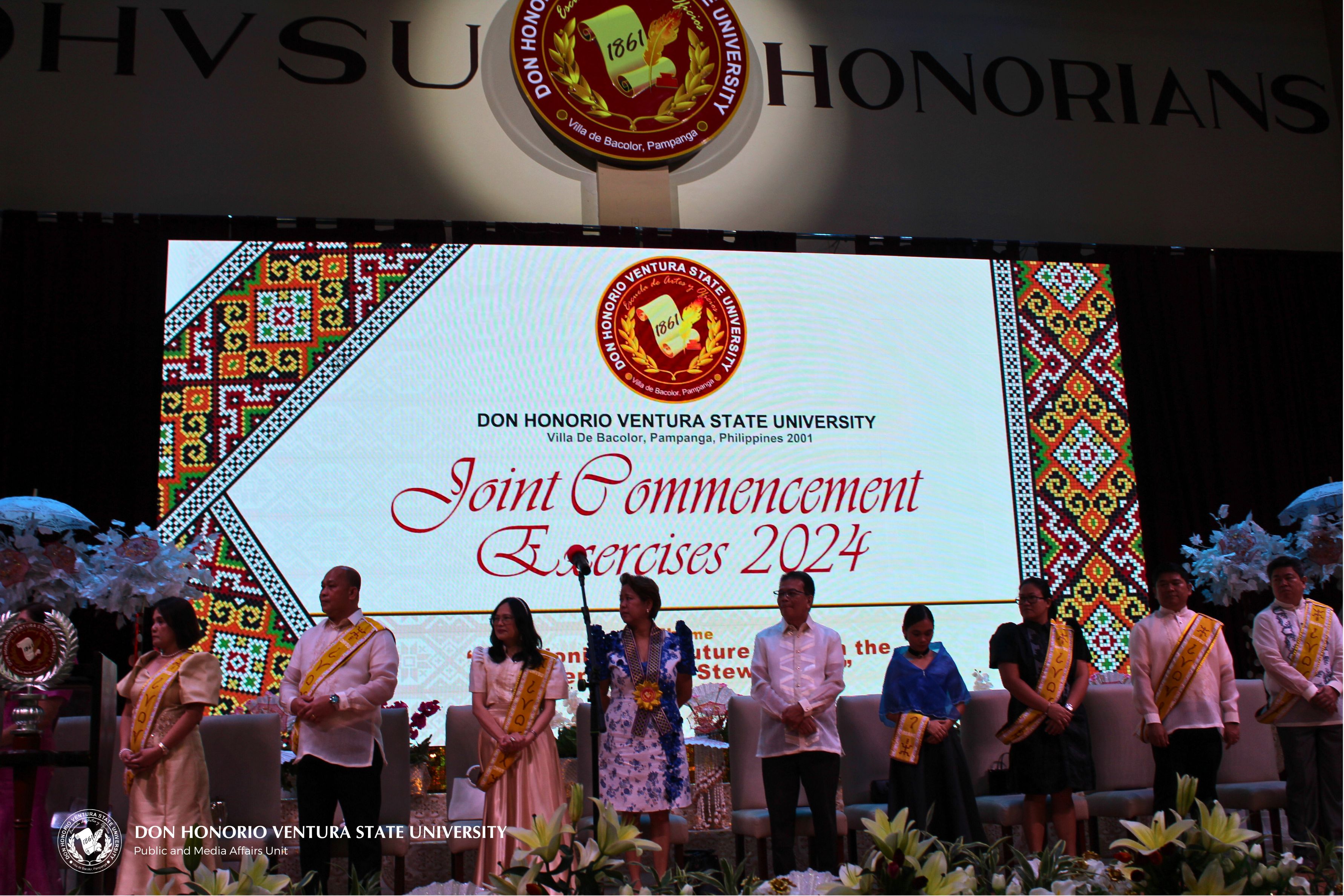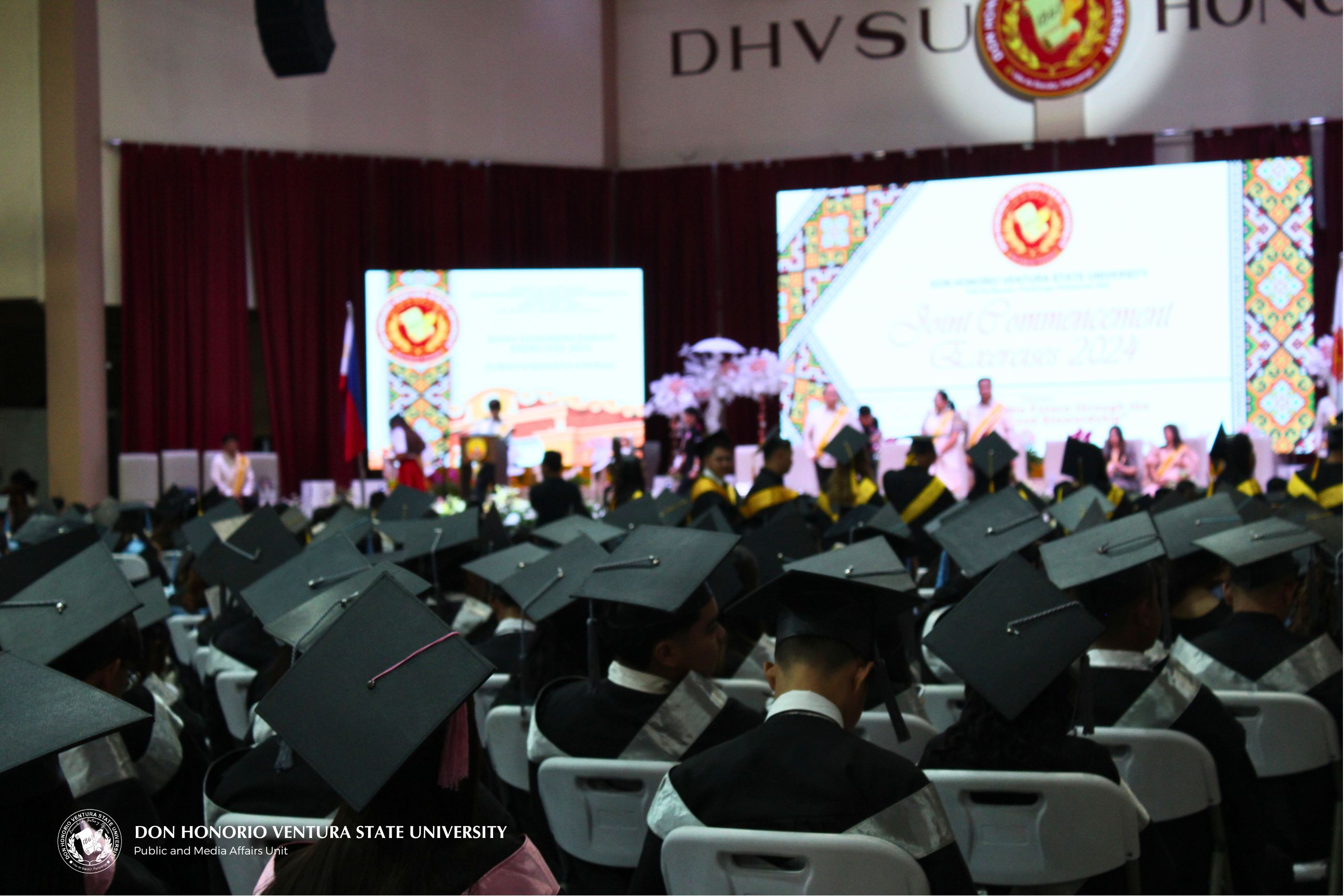 The 150 graduands from the Graduate School and the 100 graduands from the College of Arts and Sciences led the week-long proud moments as they marched on the first day of the 2024 Don Honorio Ventura State University Joint Commencement Exercises at Dr. Ernesto T. Nicdao Sports Center, Bacolor, Pampanga, on August 12, 2024.