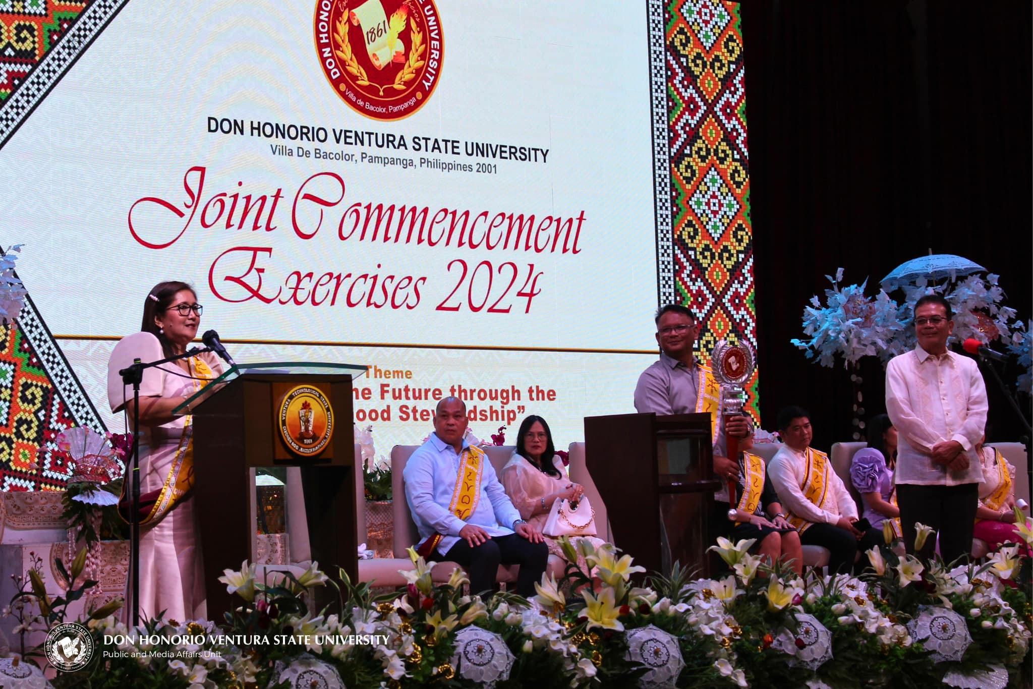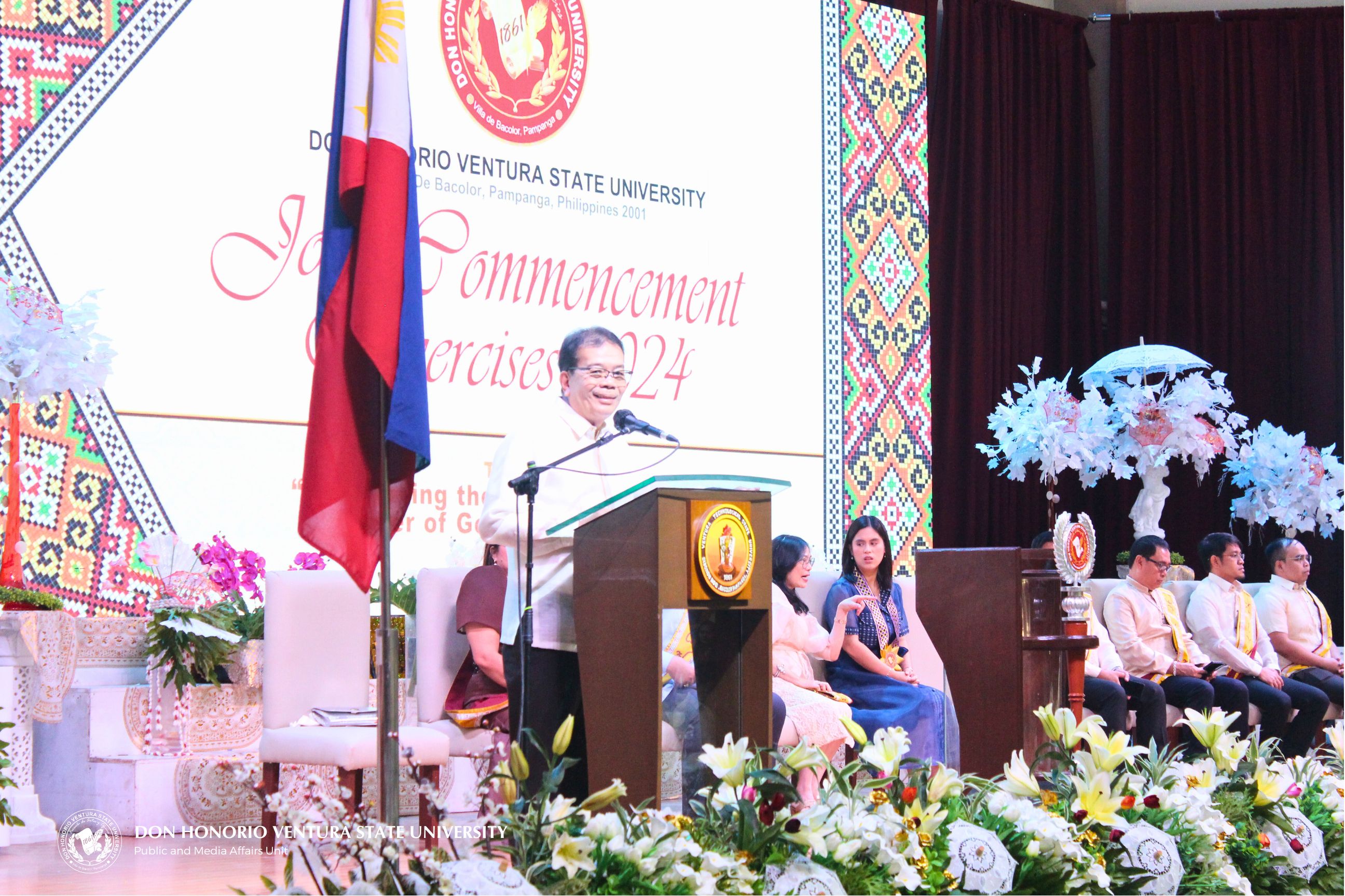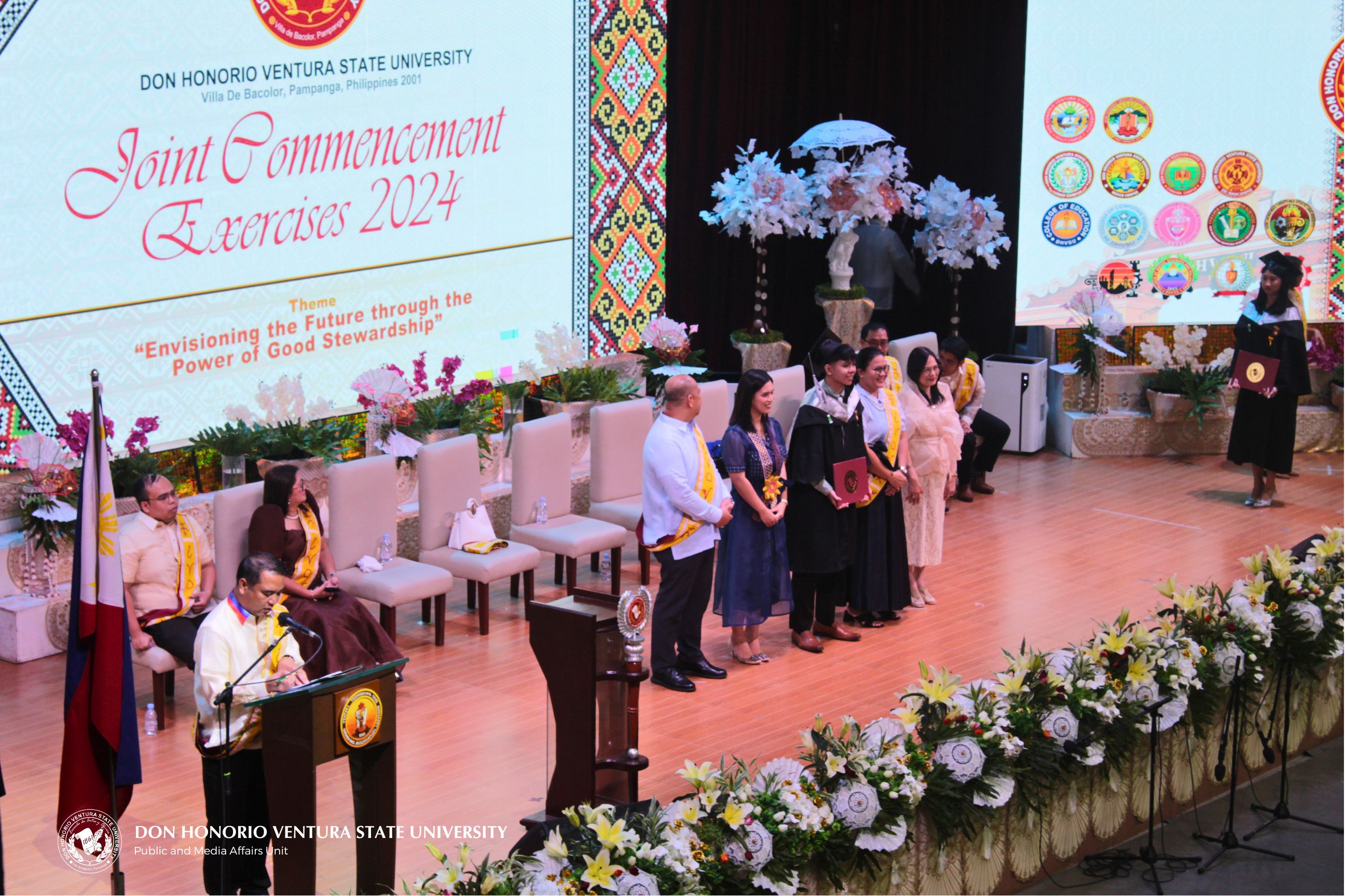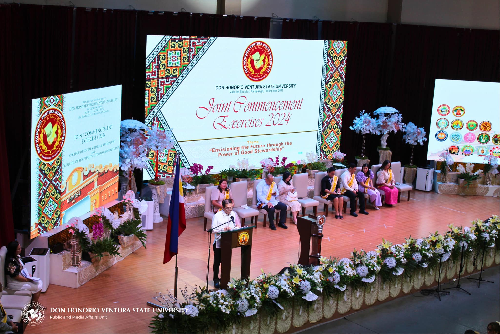 The 150 graduands from the Graduate School and the 100 graduands from the College of Arts and Sciences led the week-long proud moments as they marched on the first day of the 2024 Don Honorio Ventura State University Joint Commencement Exercises at Dr. Ernesto T. Nicdao Sports Center, Bacolor, Pampanga, on August 12, 2024.