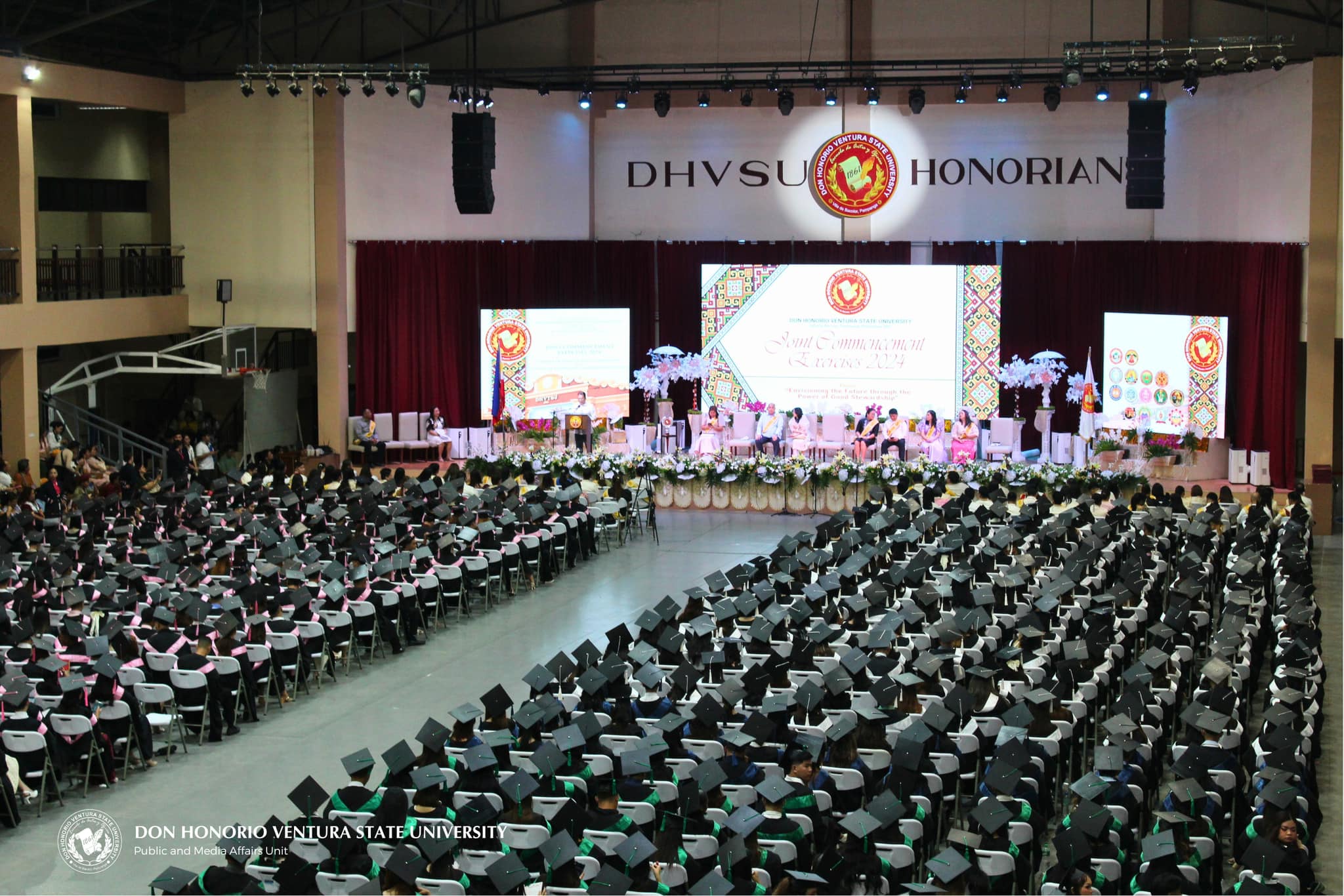 The 150 The Ernesto T. Nicdao Sports Center was filled with blue academic hoods as the hard work and efforts of 553 graduates from the DHVSU-College of Education culminated in the afternoon session of the first day of the 2024 Don Honorio Ventura State University Joint Commencement Exercises in Bacolor, Pampanga, on August 12, 2024.