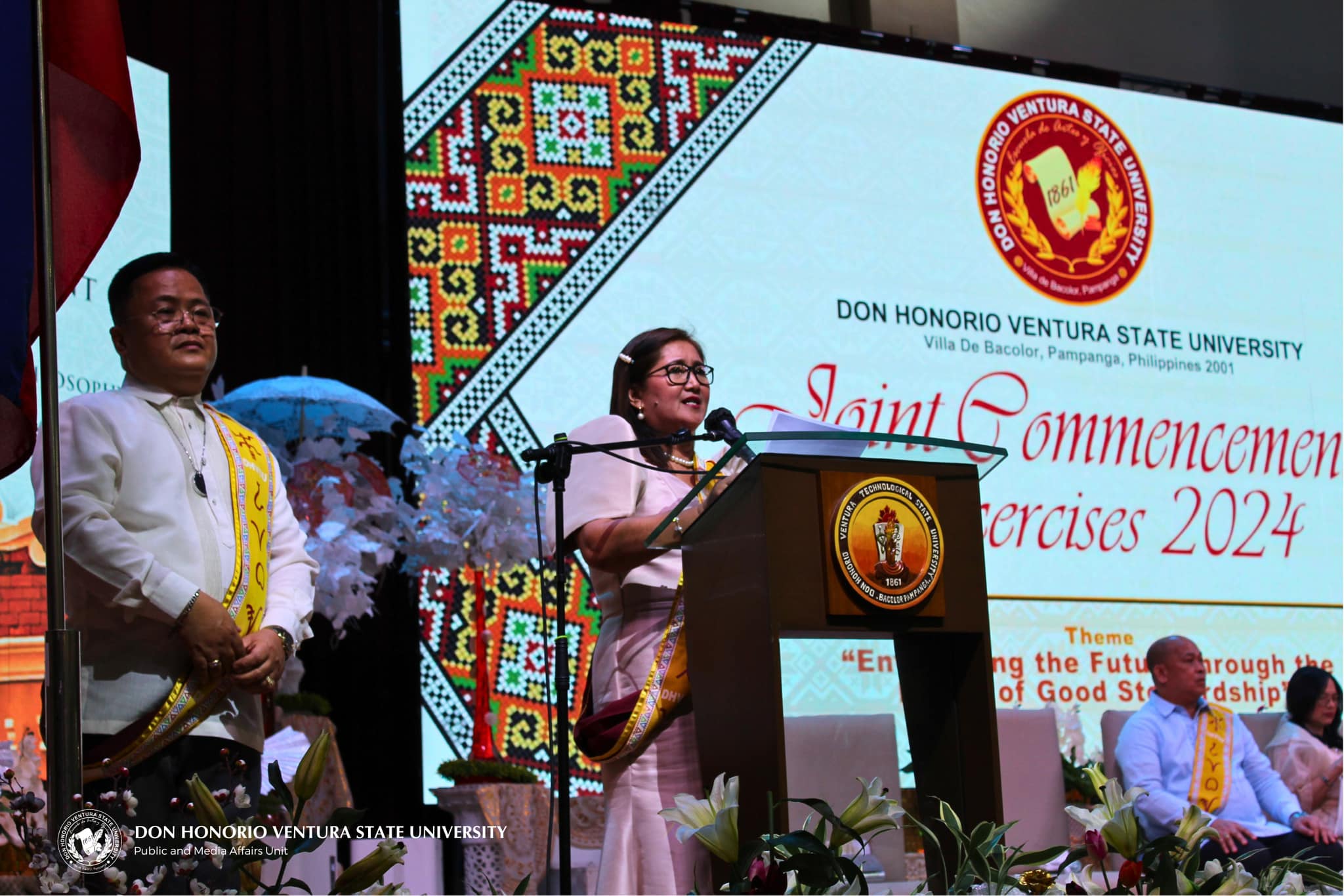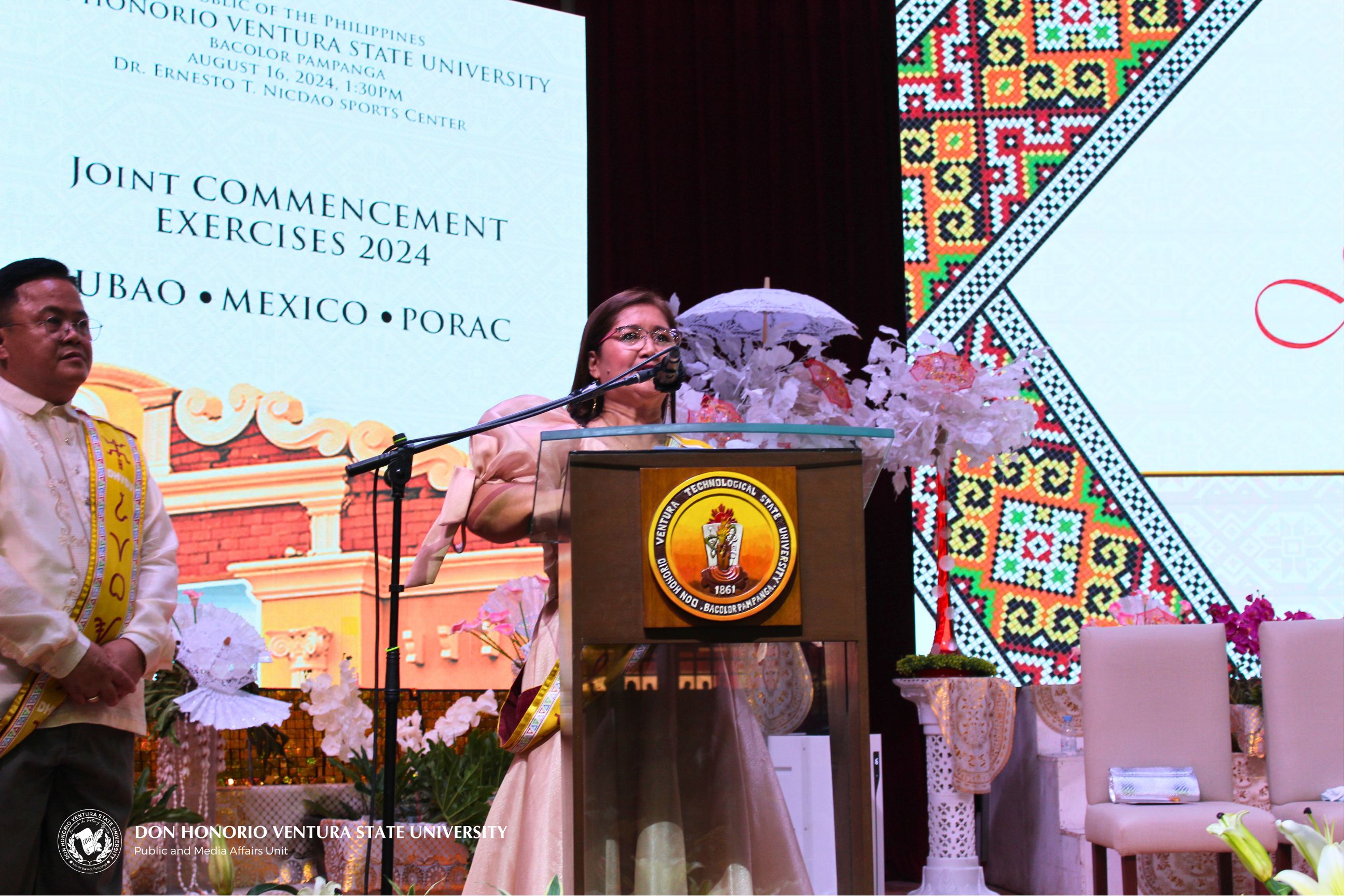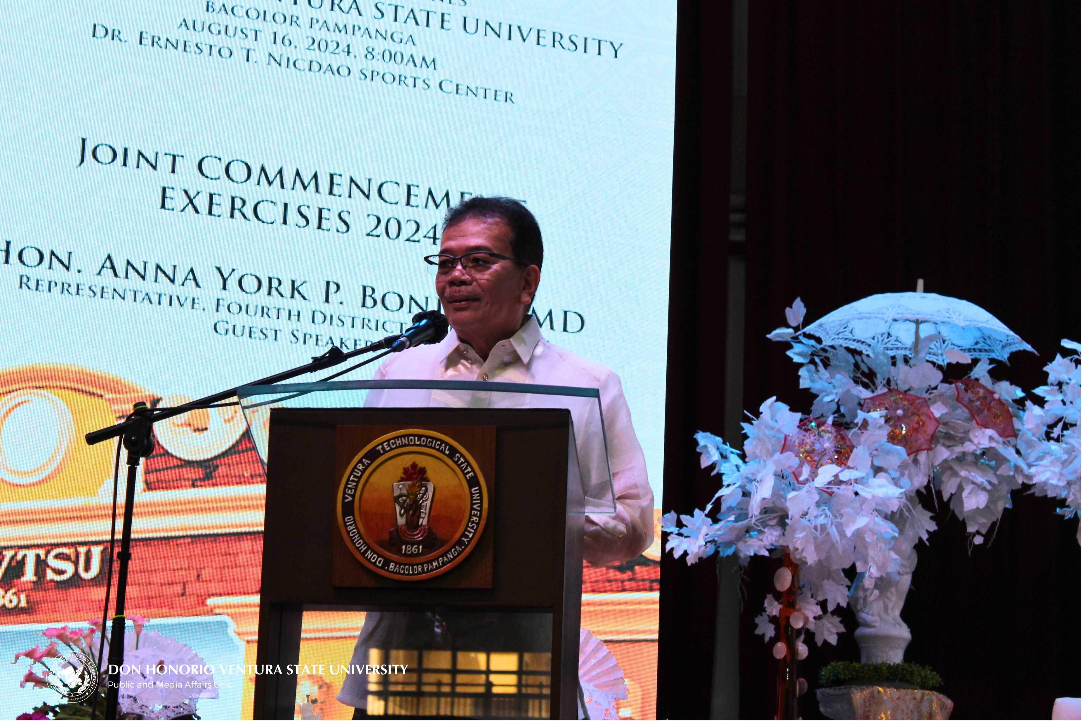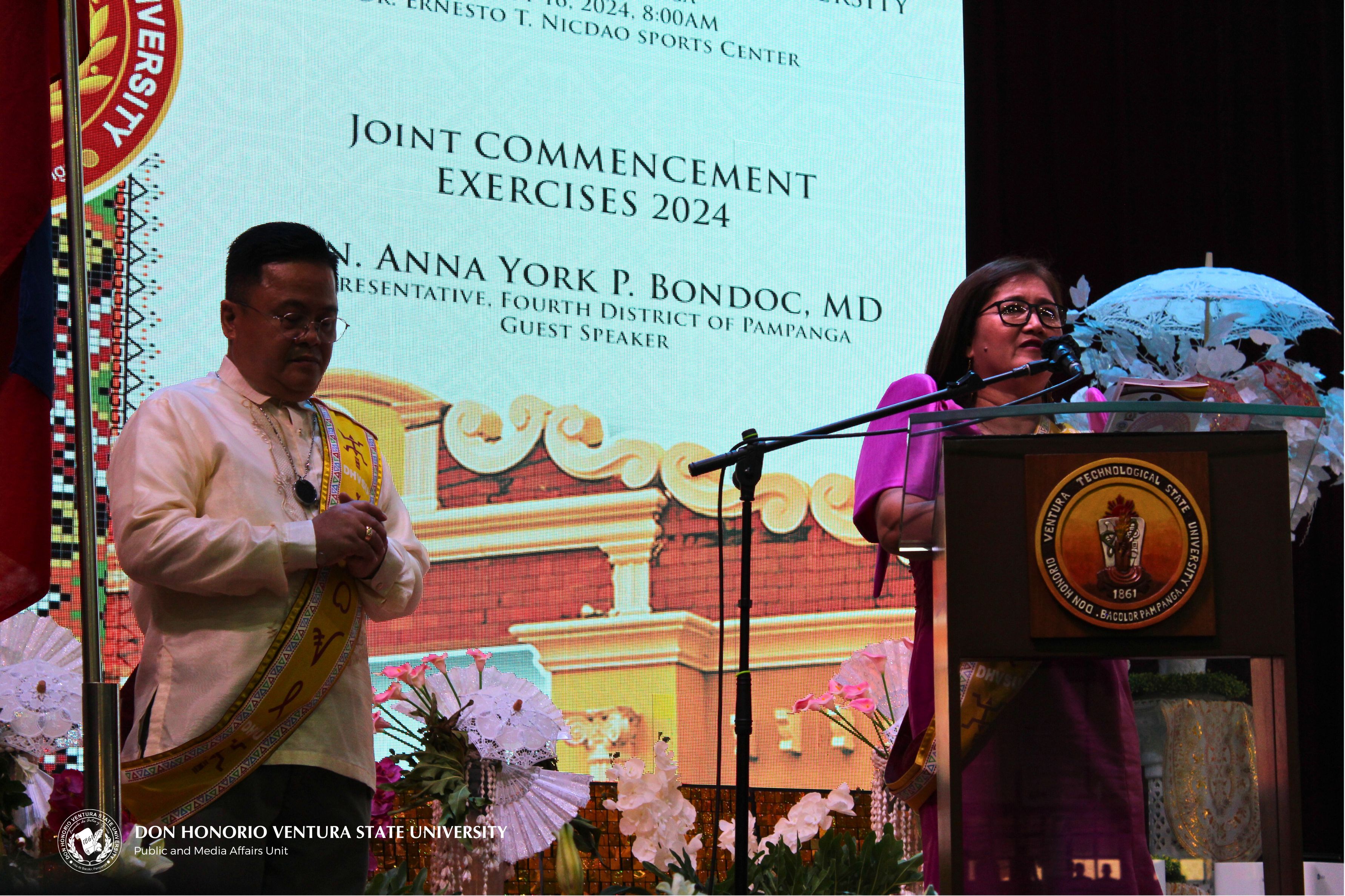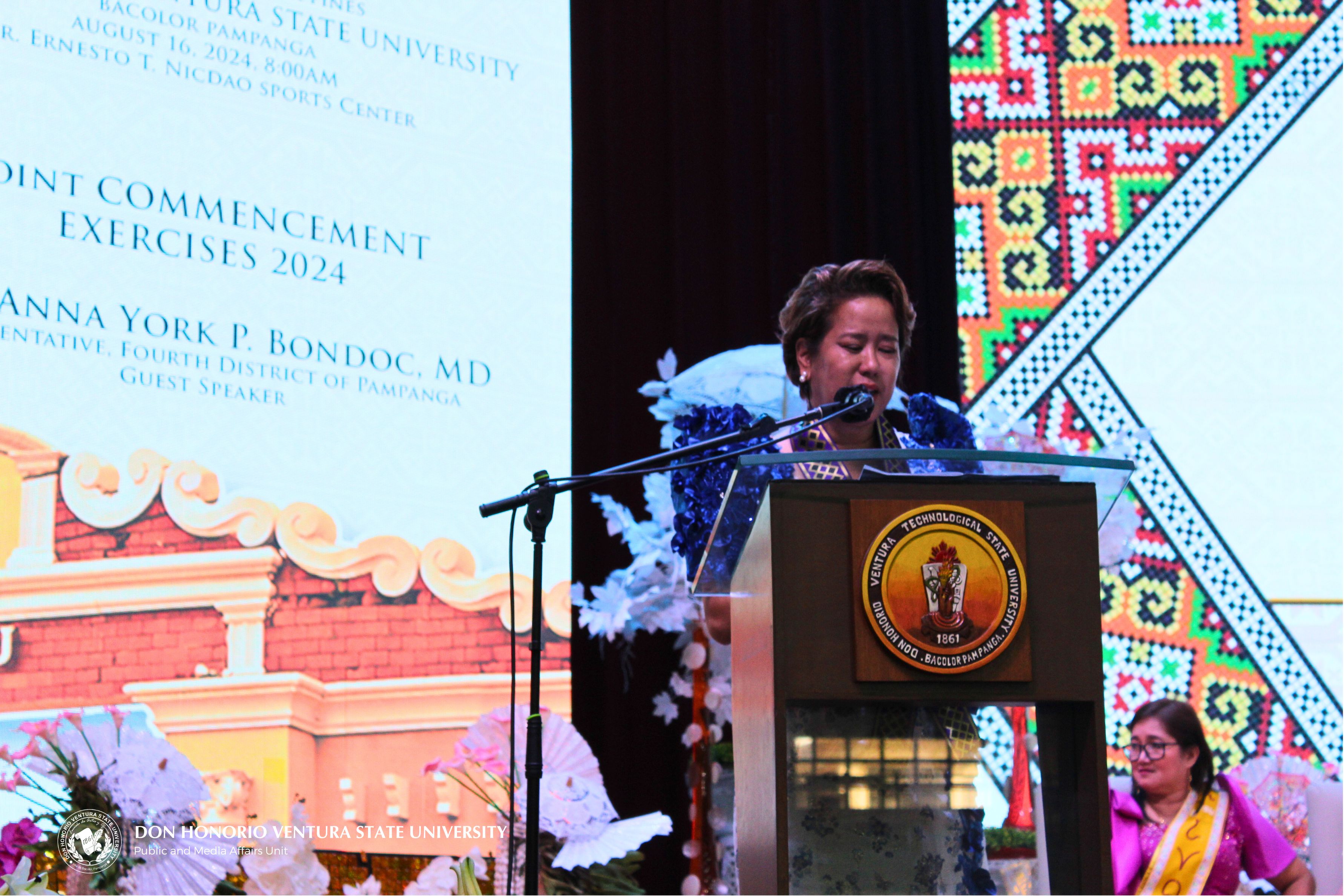 Hon. Anna York Bondoc, Representative of the Fourth District of Pampanga, retold the history of the three campuses during her speech as the guest speaker of the ceremony, and she reaffirmed her commitment to supporting the education of Kapampangan students.