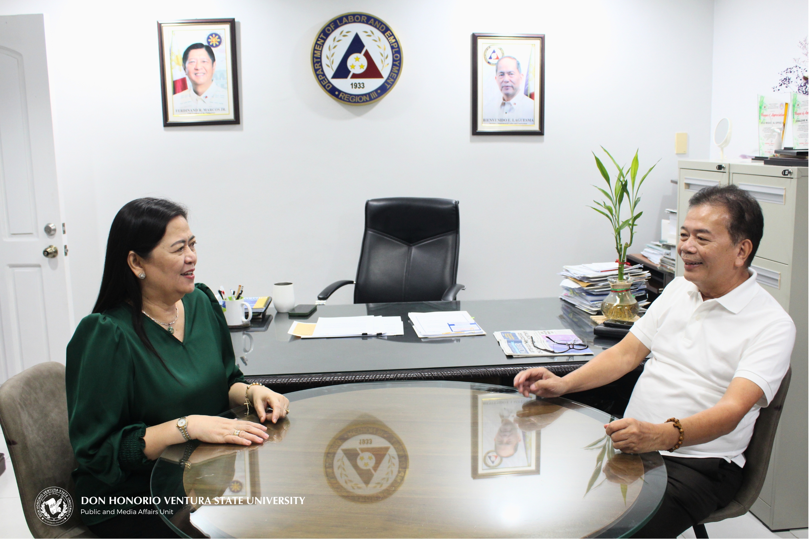 The DHVSU team, led by its University President Dr. Enrique G. Baking, warmly welcomed DOLE Central Luzon Director Geraldine M. Panlilio to her office at DOLE-Central Luzon, located in Maimpis, San Fernando, Pampanga.