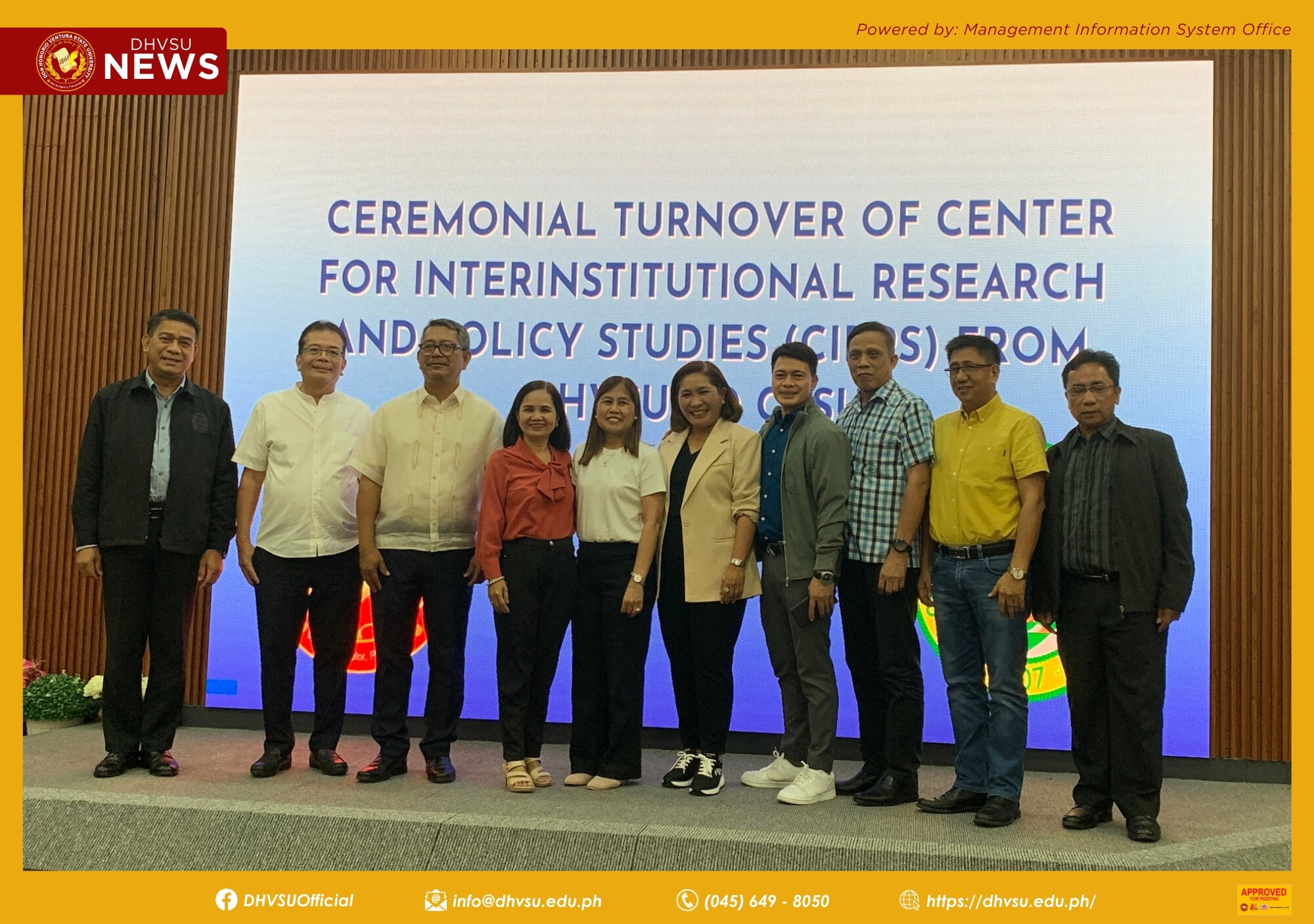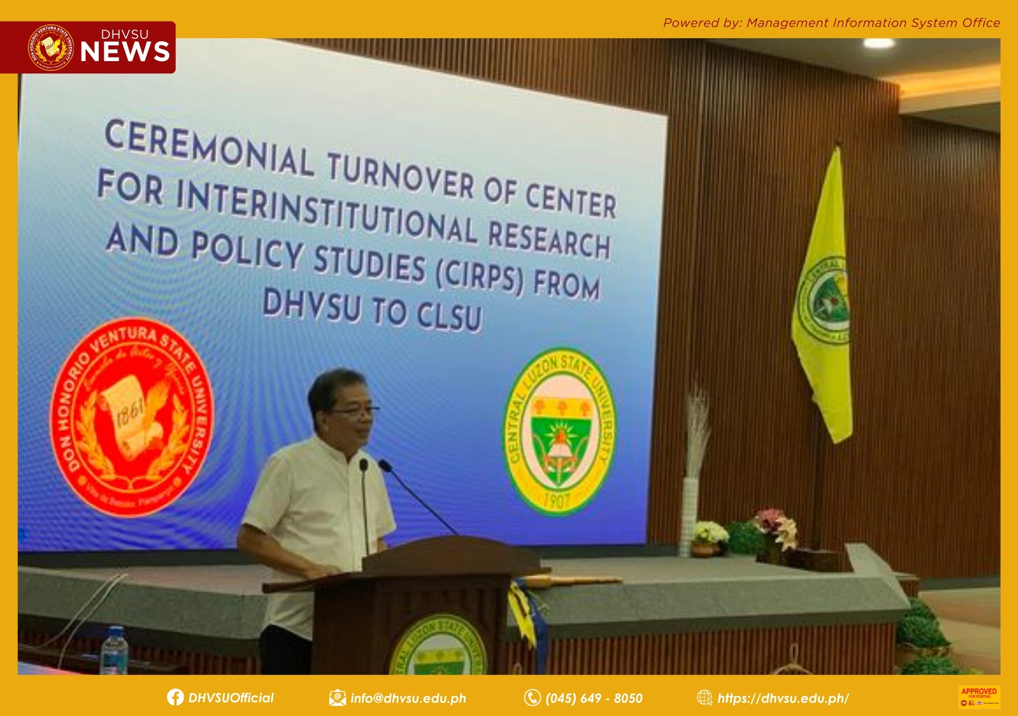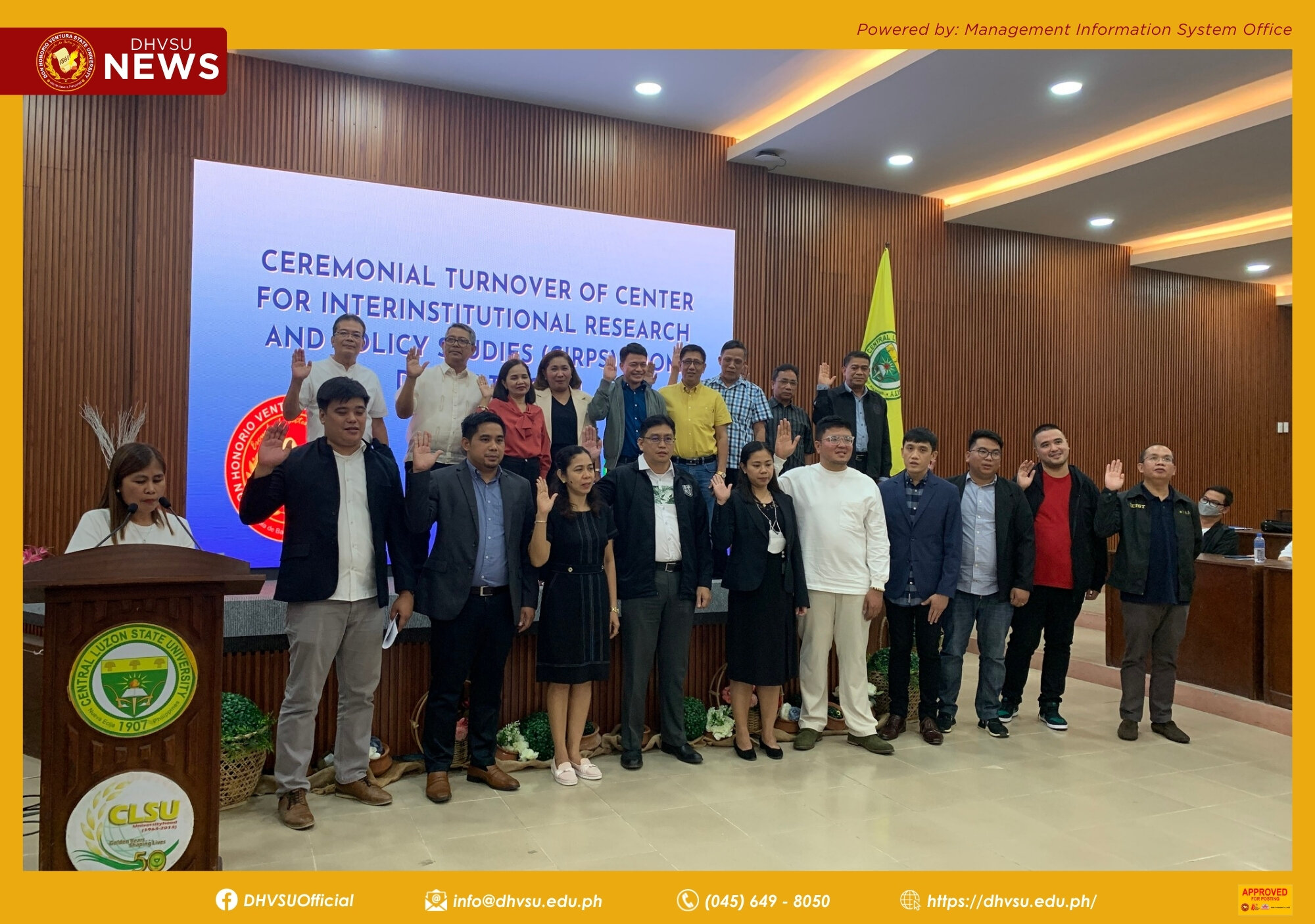 SCIENCE CITY OF MUÑOZ, Nueva Ecija - To sustain the initiatives of the Development Council-State Universities and Colleges (DC-SUC III) - Center for Interinstitutional Research and Policy Studies (CIRPS), the Don Honorio Ventura State University (DHVSU), led by its University President, Dr. Enrique G. Baking, officially marked the transfer of leadership to the outgoing President of Central Luzon State University (CLSU) and the newly appointed chair, Dr. Edgar A. Orden, in a ceremonial turnover held at CLSU Amphitheater on December 11, 2023.