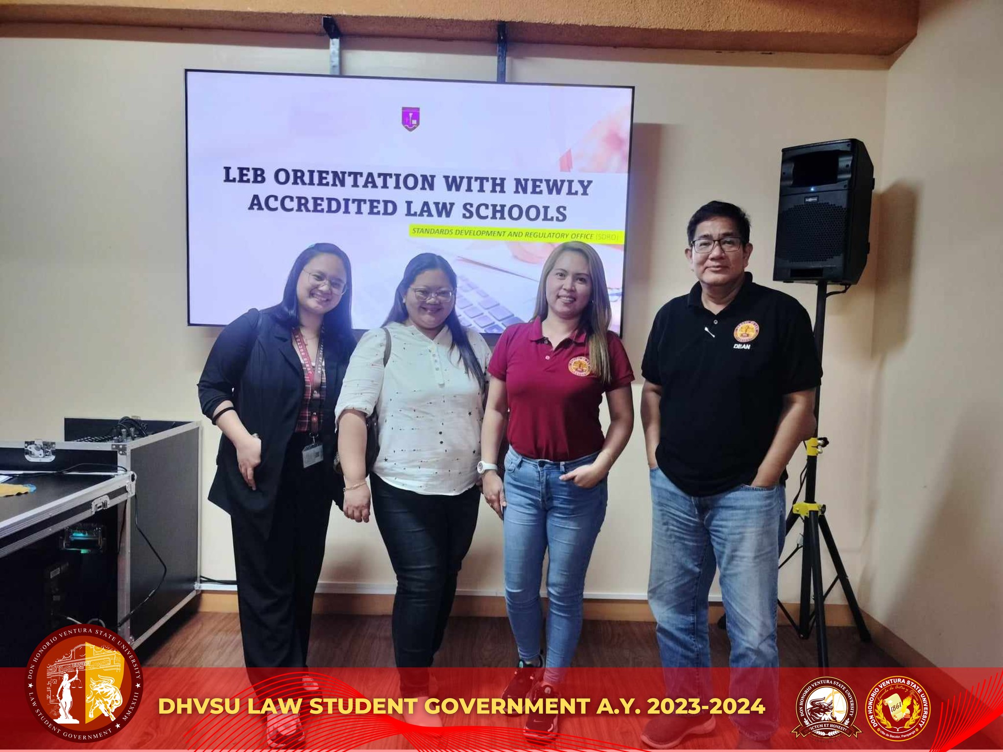 On August 29, 2023, the DHVSU School of Law had the esteemed honor of receiving an invitation from the Legal Education Board to a significant seminar/meeting held in Quezon City. Our representation was top-notch, led by our esteemed Dean Dave Aquino, and supported by the presence of Alayne F. Lavarias, our LSG Secretary, Katherine M. Navarro, the Law Librarian, and Monina Enomo from the administrative staff.
