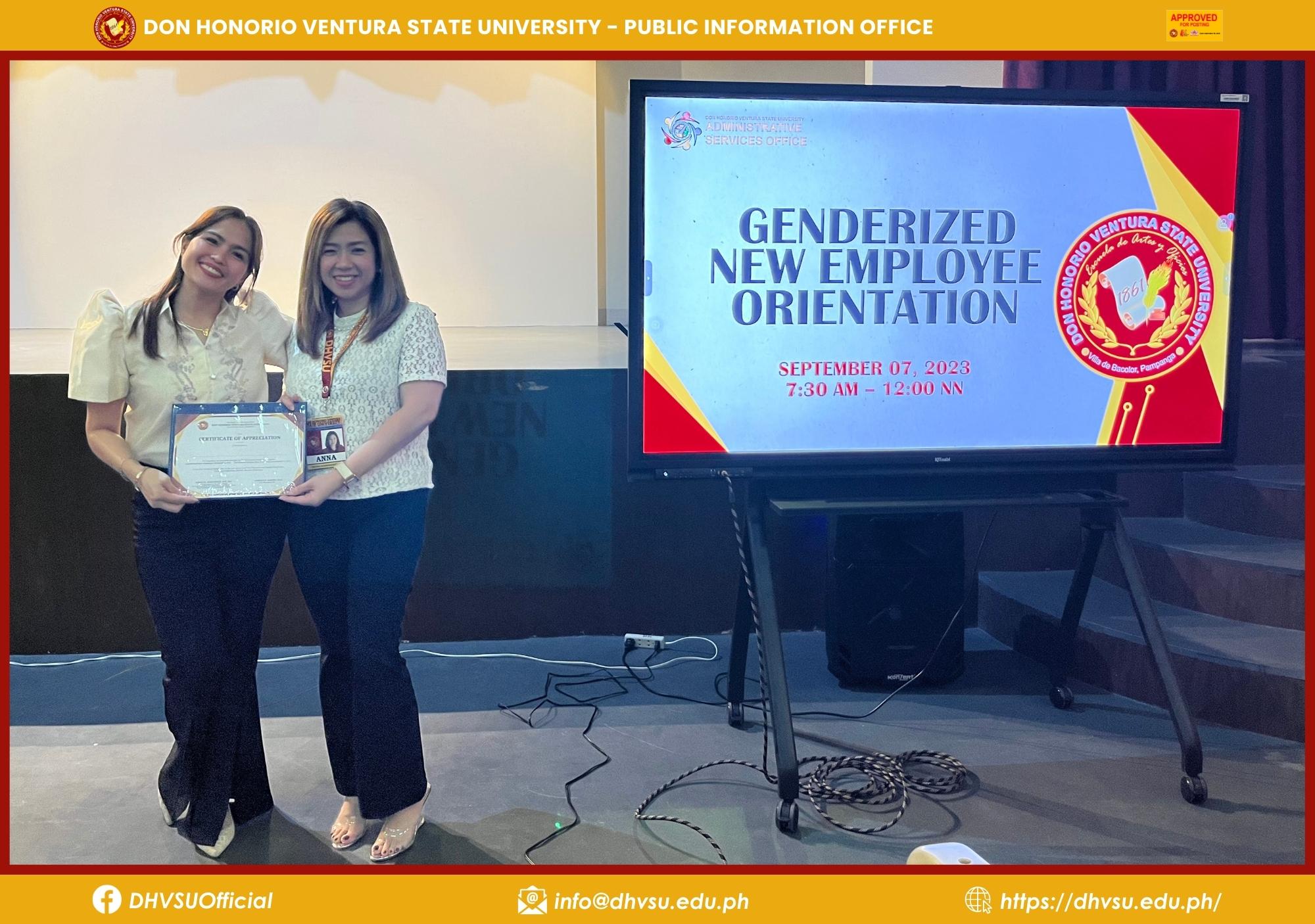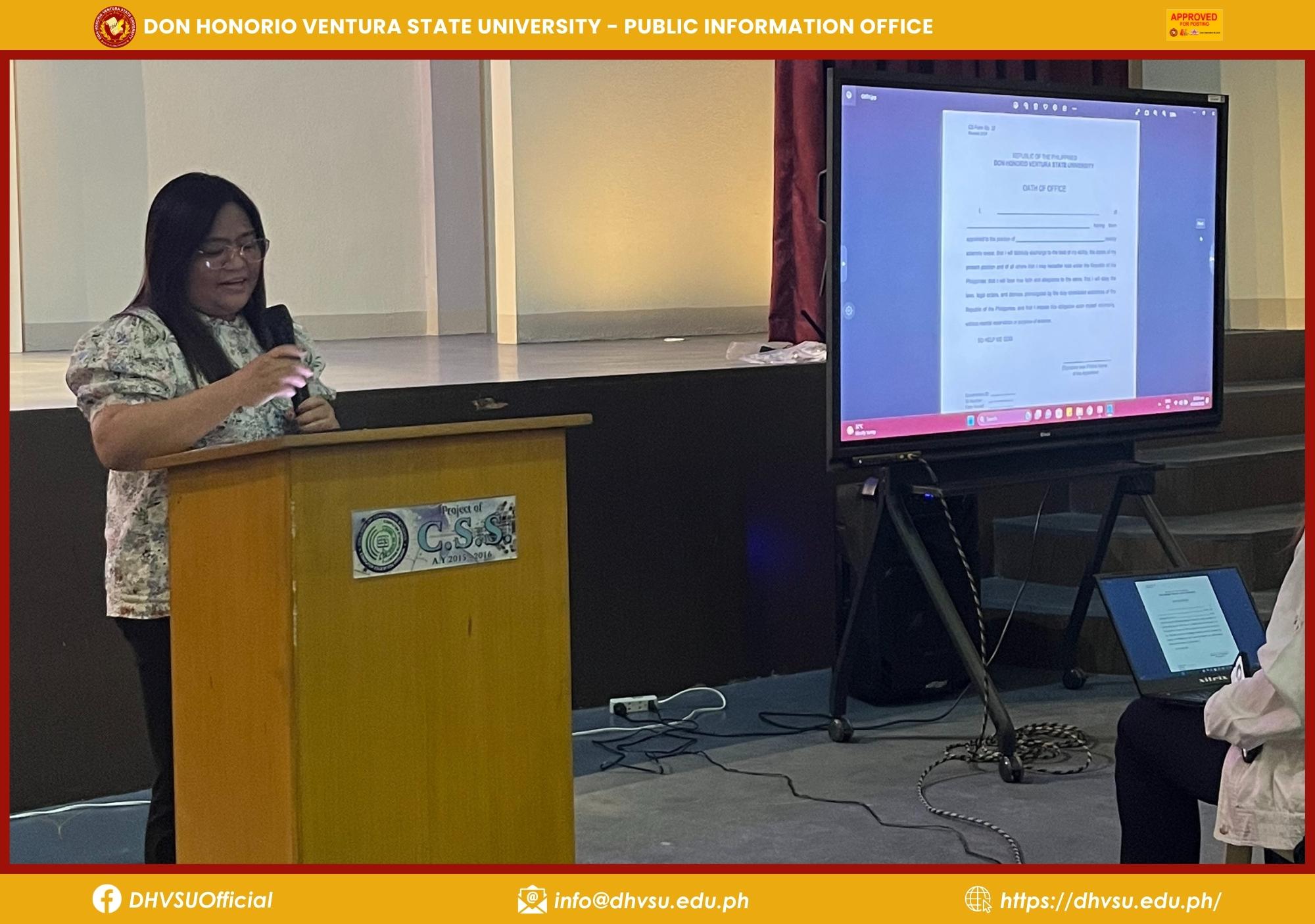 The Don Honorio Ventura State University (DHVSU) took a step in empowering its workforce as the Human Resource Management Unit of the Administrative Services Office conducted an orientation program for the 72 newly hired employees at the University Auditorium on September 7.