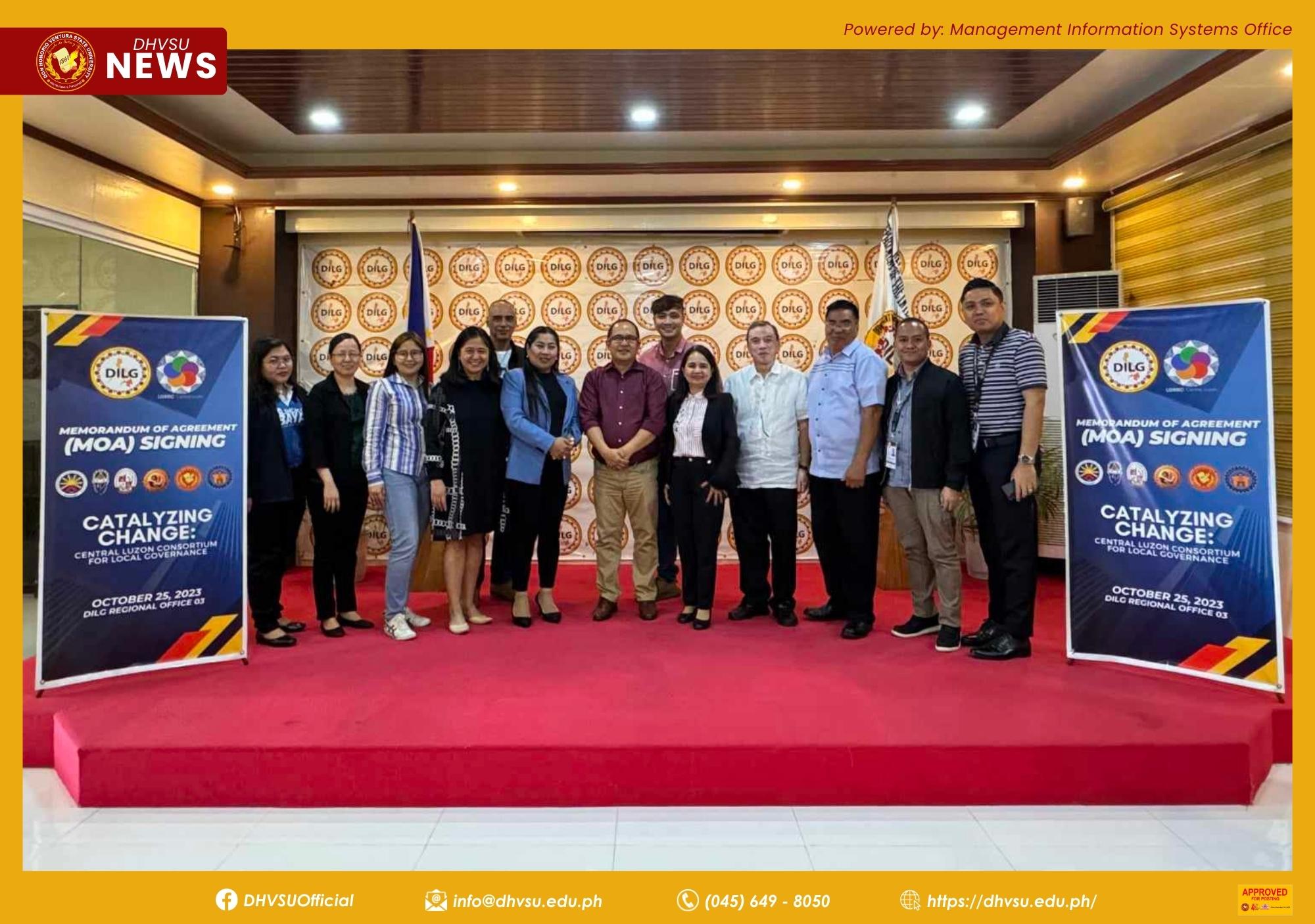 The Department of the Interior and Local Government (DILG) Region III, through the Central Luzon Local Governance Regional Resource Center (CL-LGRRC), signed a Memorandum of Agreement (MOA) with Don Honorio Ventura State University (DHVSU) for the establishment of the Central Luzon Consortium for Local Governance at the DILG Regional Office III, City of San Fernando, Pampanga on October 25, 2023.