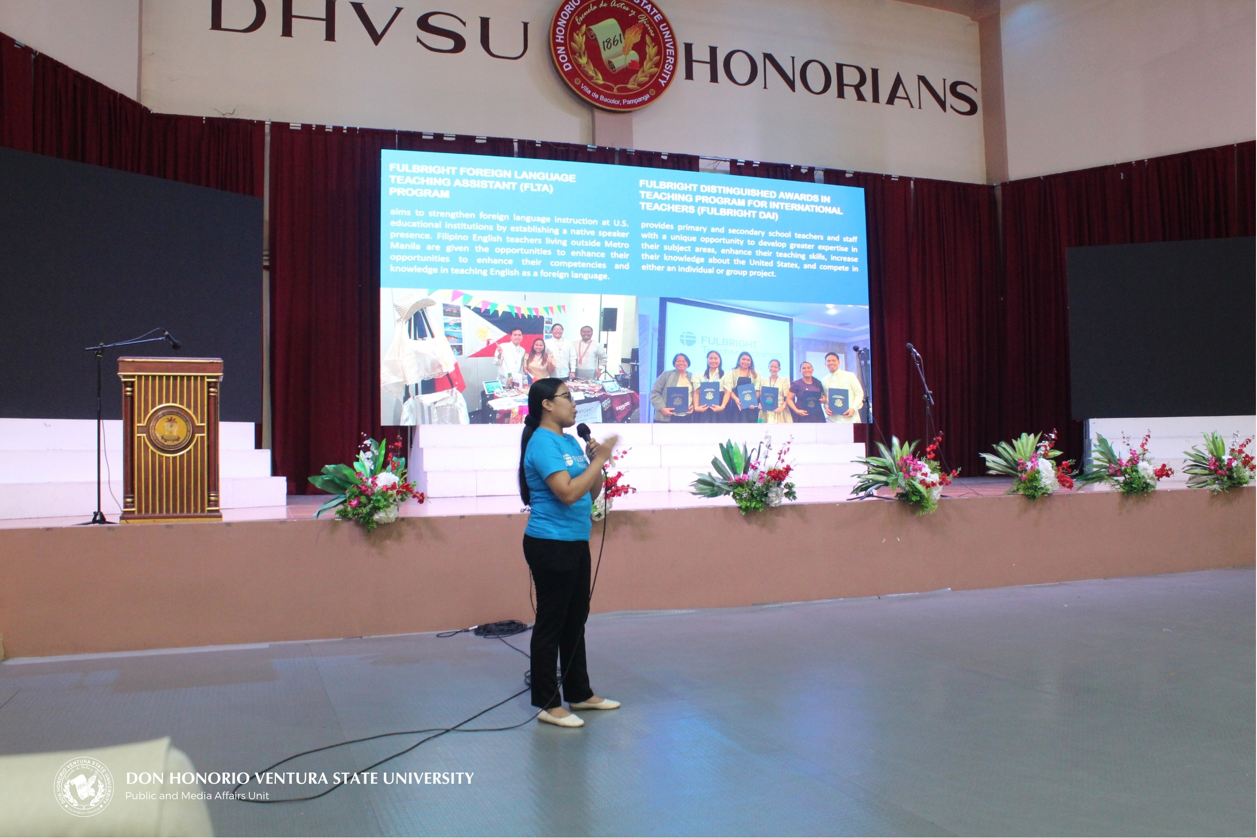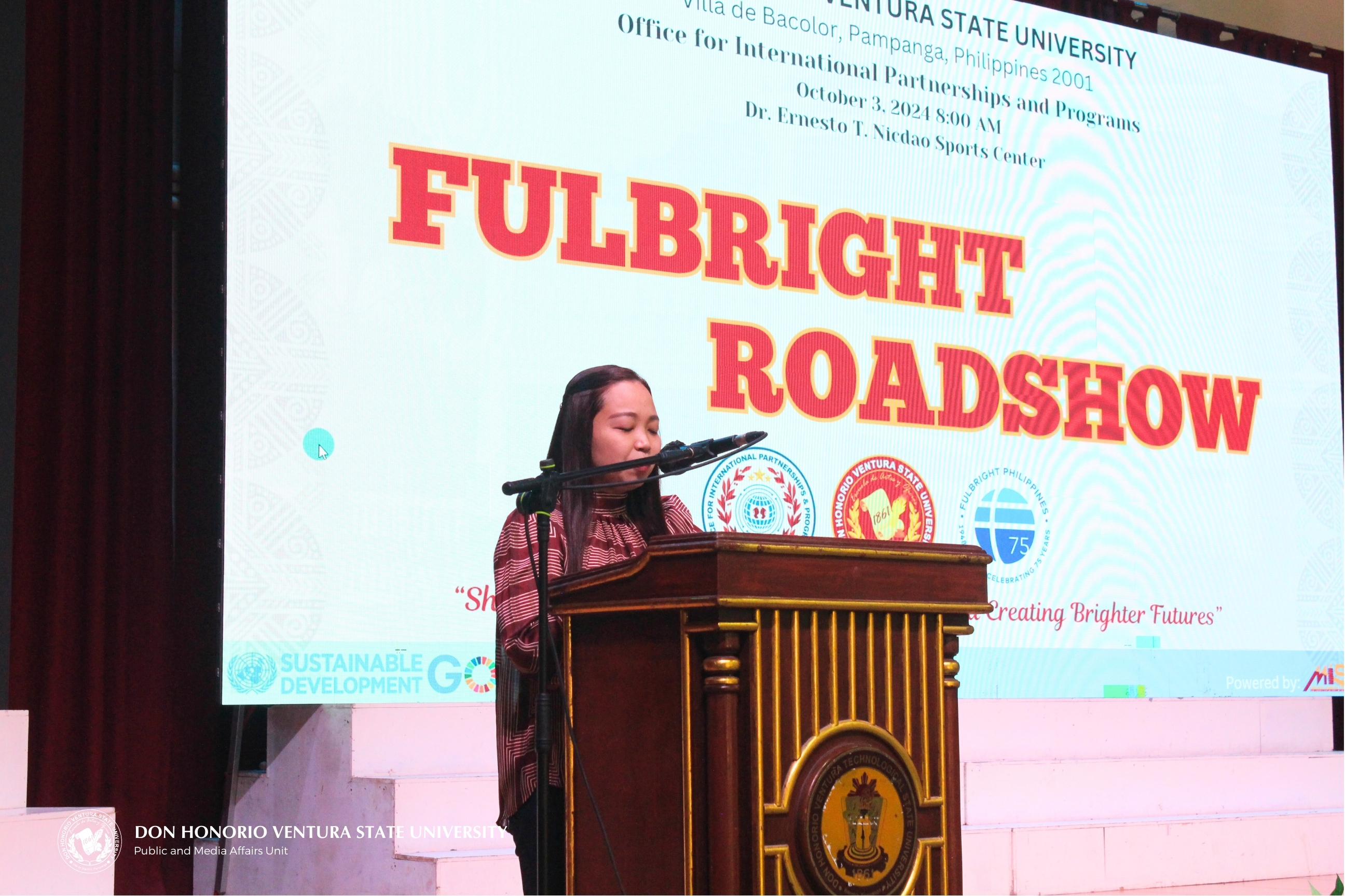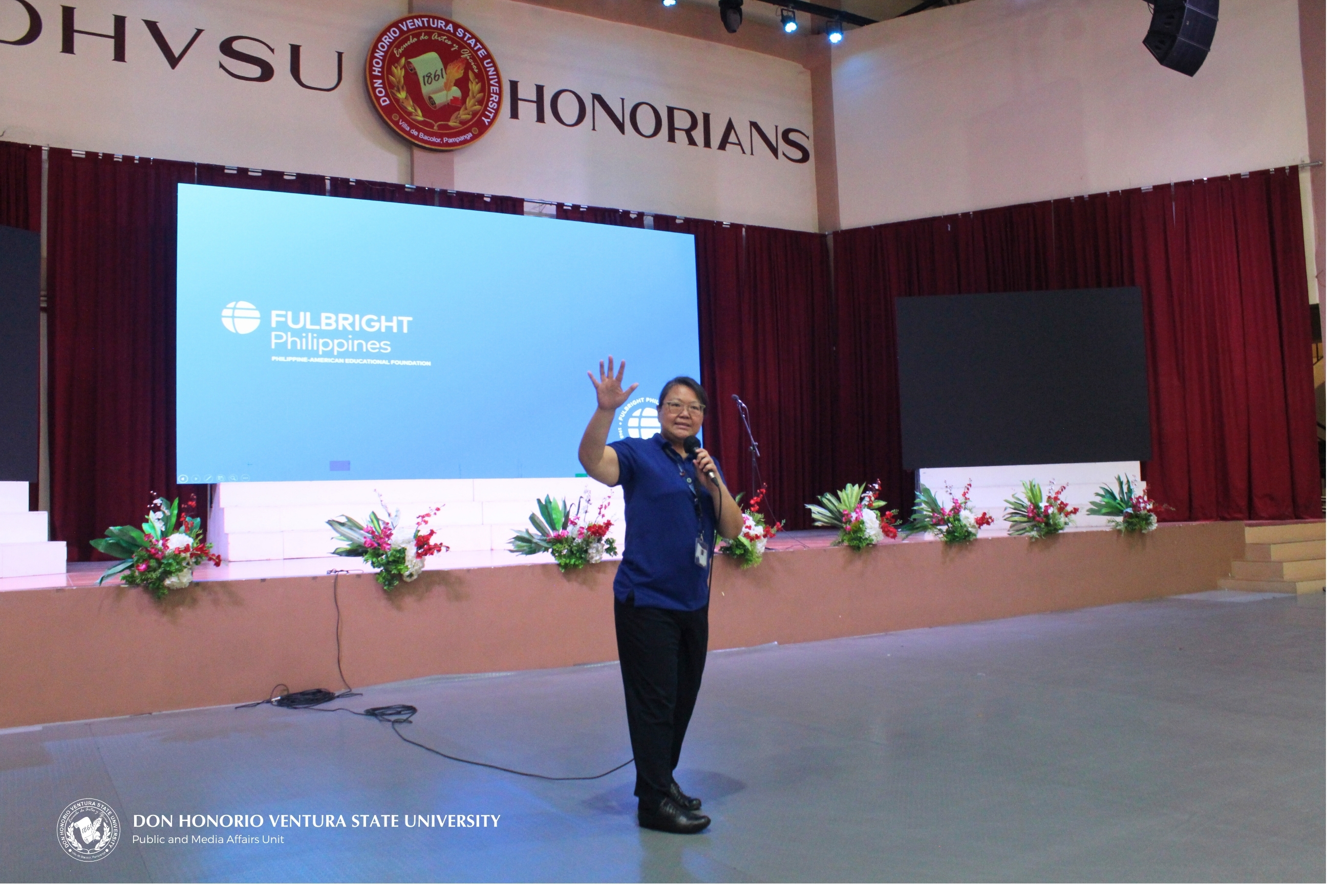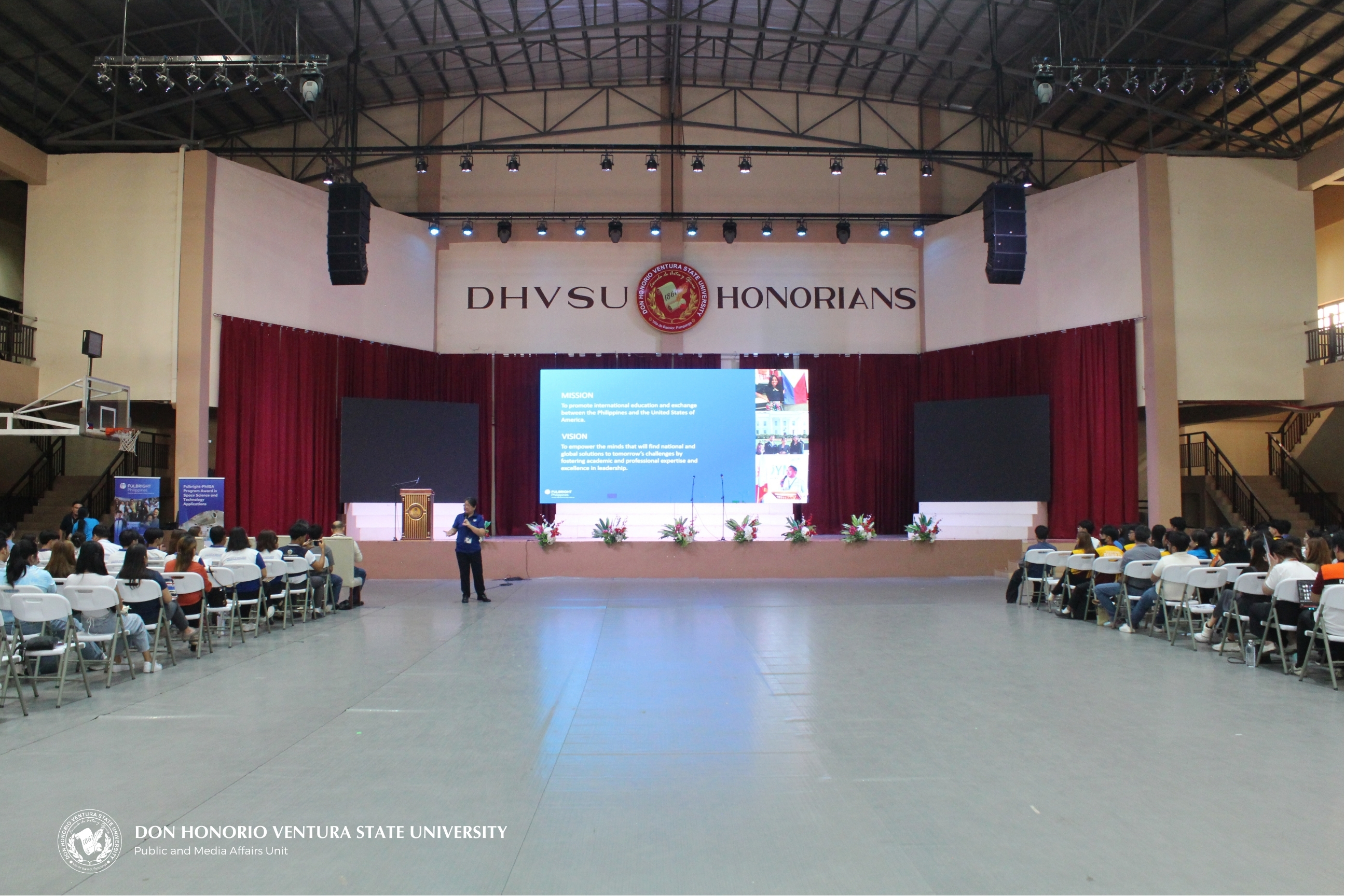 BACOLOR, PAMPANGA - The Philippine-American Educational Foundation (PAEF), also known as the Fulbright Commission in the Philippines, held a free information session for select faculty, staff, and students of Don Honorio Ventura State University (DHVSU) at the Ernesto T. Nicdao Sports Center on October 3, 2024.