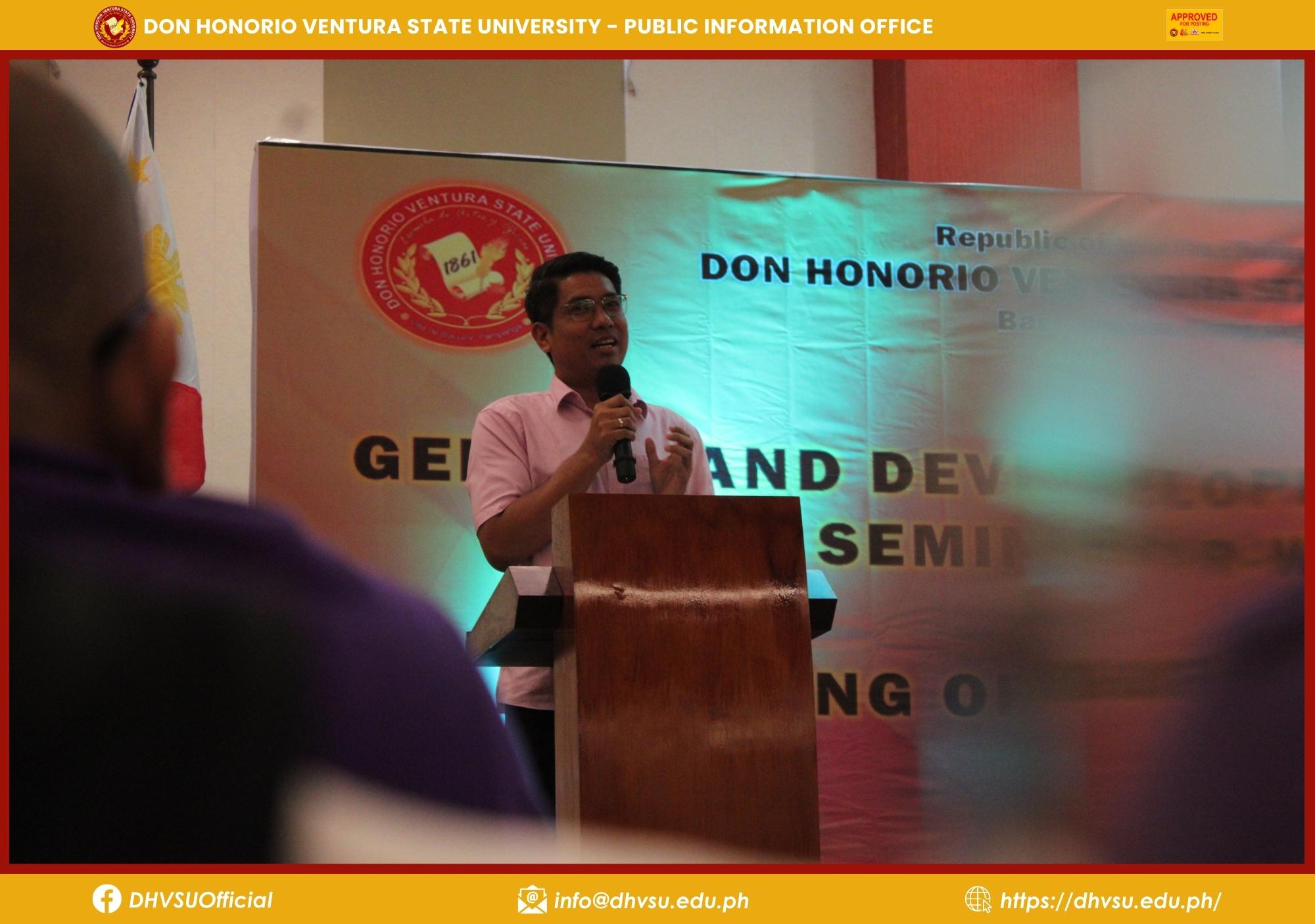 Moreover, Dr. Roel P. Anicas, Commission on Higher Education (CHED) – Region 3 Educational Supervisor and GAD Specialist, also shared the insights of CHED regarding DHVSU’s GAD initiatives.