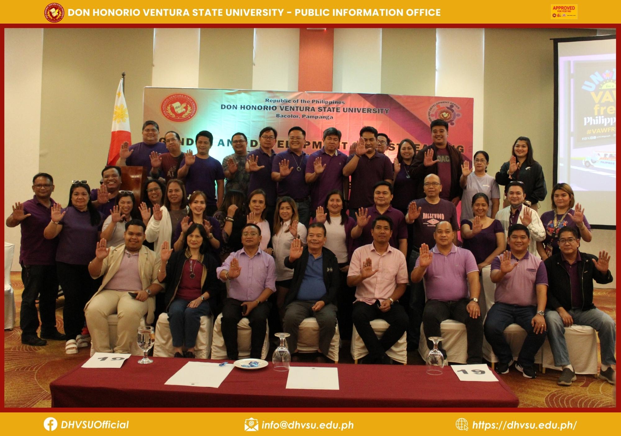 This three-day event comprised the GFPS technical working group led by Dr. Dolores Quiambao, Vice President for Student Affairs and Services (VP-SAS), and the DHVSU’s GFPS focal person, including members of the administrative council headed by the University President Dr. Enrique Baking, GAD focal persons, and GAD technical support representatives from various offices, colleges, and campuses.