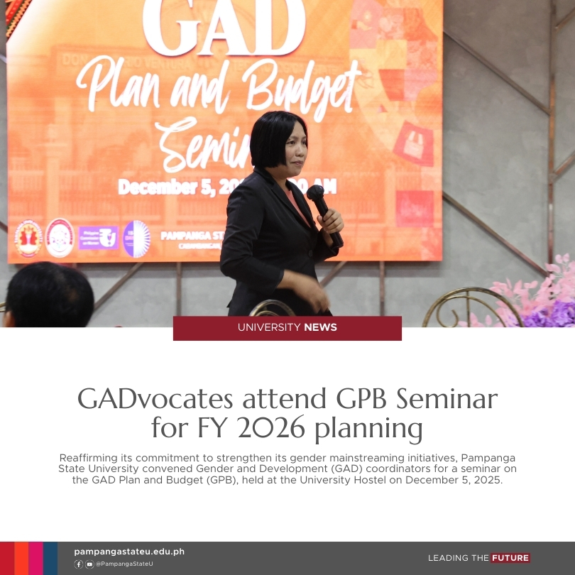 Reaffirming its commitment to strengthen its gender mainstreaming initiatives, Pampanga State University convened Gender and Development (GAD) coordinators for a seminar on the GAD Plan and Budget (GPB), held at the University Hostel on December 5, 2025.