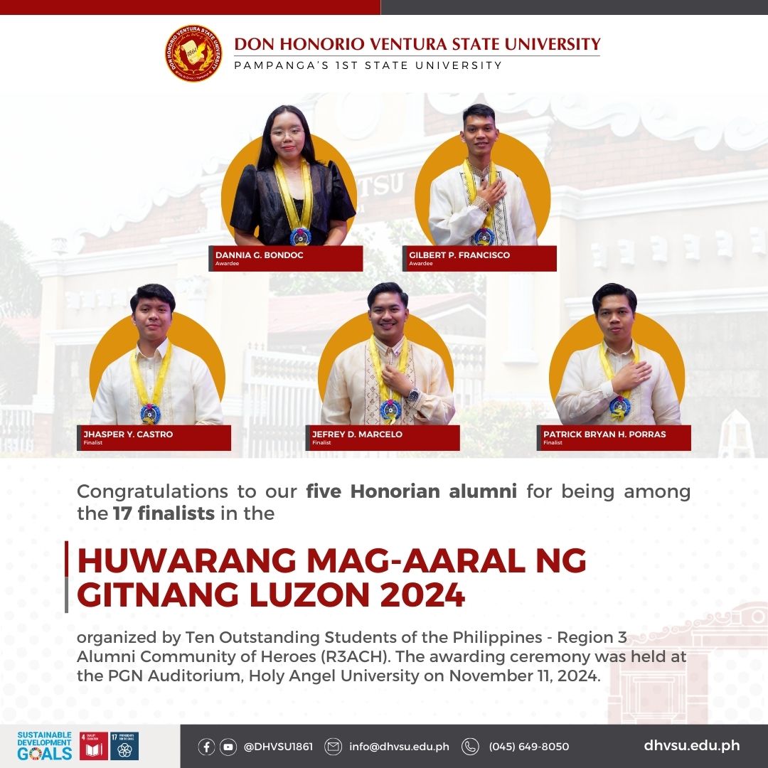 of Heroes (R3ACH) named five Honorian alumni among the 17 finalists of the 2024 Huwarang Mag-aaral ng Gitnang Luzon (HMGL).