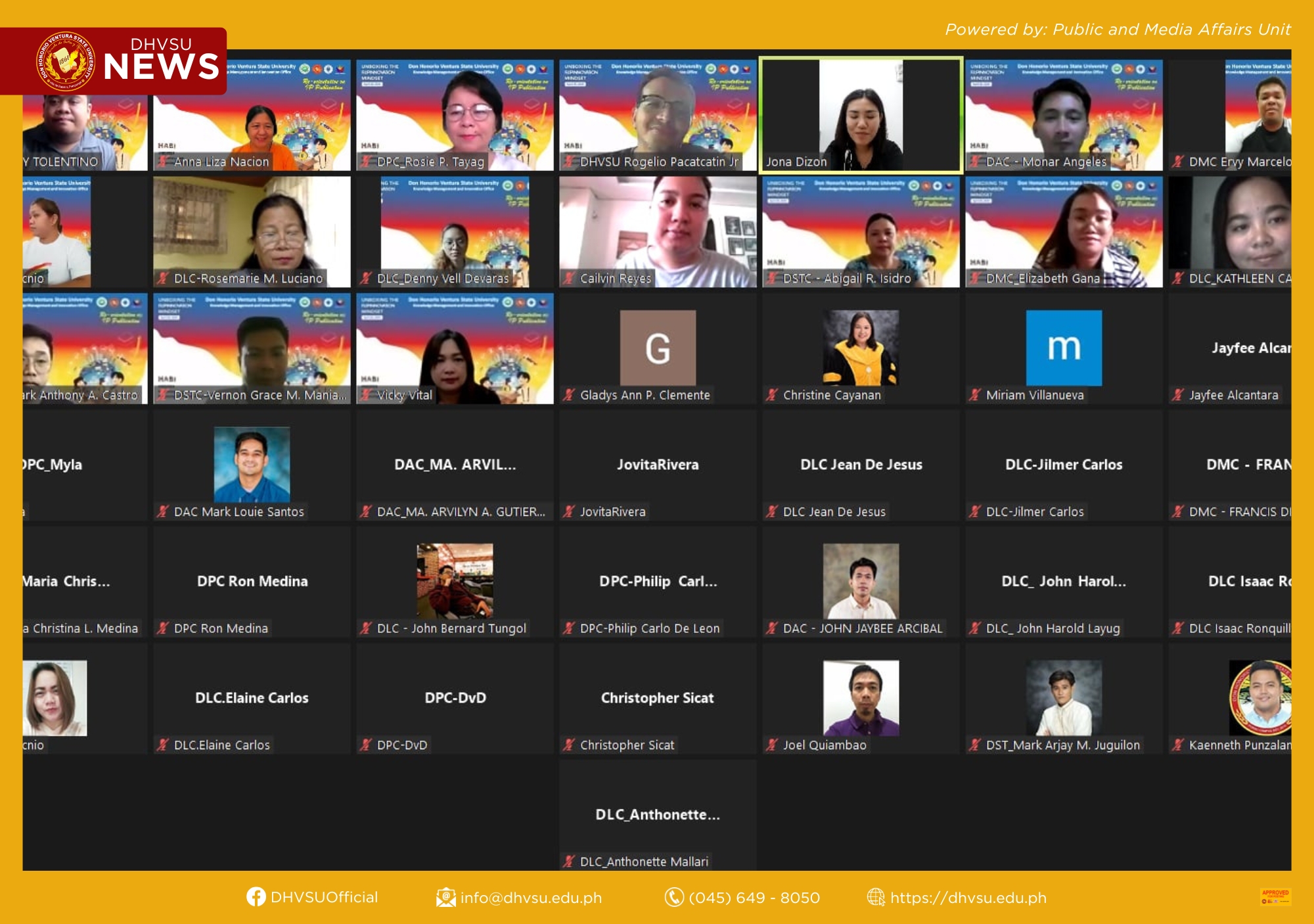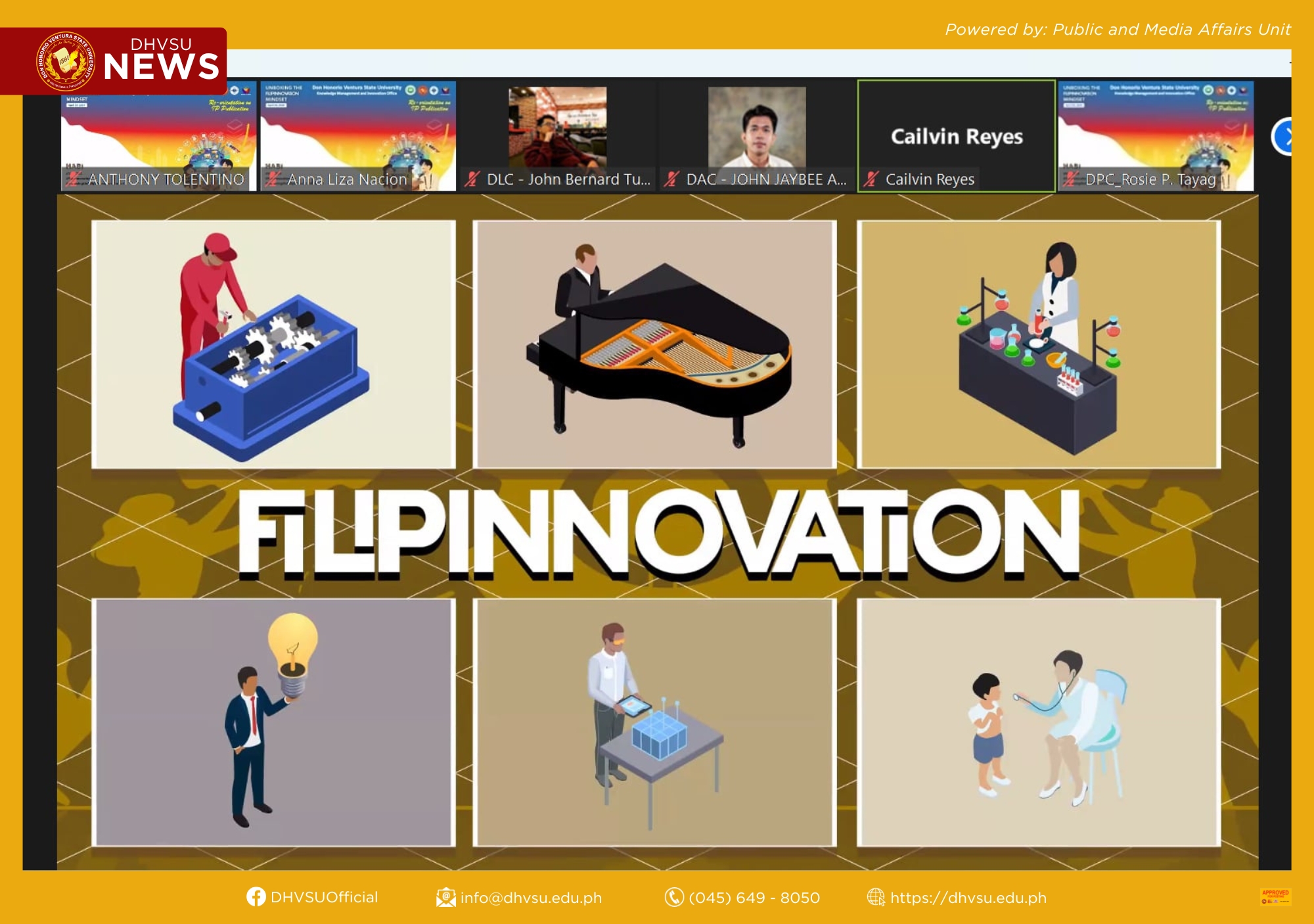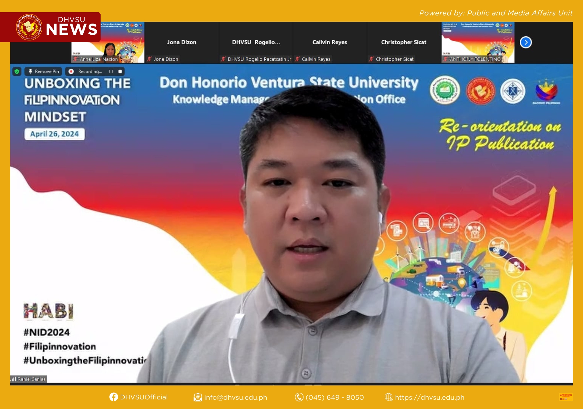 This is how the Knowledge Management and Innovation Office (KMIO) of Don Honorio Ventura State University (DHVSU) observed the National Innovation Day (NID) 2024 through the webinar on Reorientation on Intellectual Property (IP) Publication last April 26 via Zoom Meeting and Facebook live.