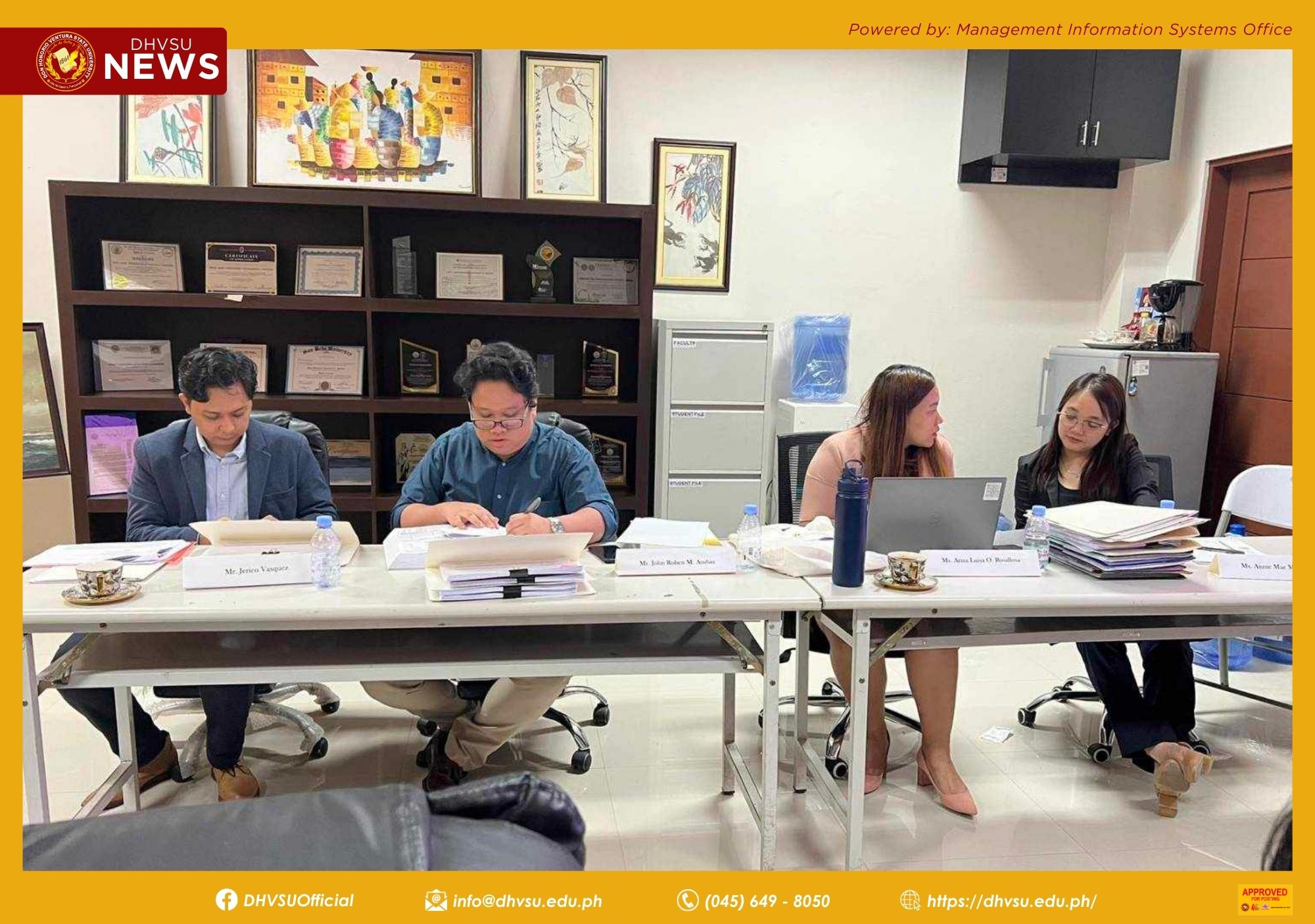 DHVSU officials, led by University President Dr. Enrique Baking and School of Law Dean Atty. David Robert C. Aquino, warmly welcomed the LEB team, headed by Mr. John Roben M. Ambas, Supervising Education Program Supervisor; Ms. Annie Mae M. Baldago, Head of the Quality Assurance and Accreditation Unit, along with Ms. Anna Luisa O. Rosallosa; and Mr. Gabriel Thomas R. Garcia, Head of the Standards Development Unit.