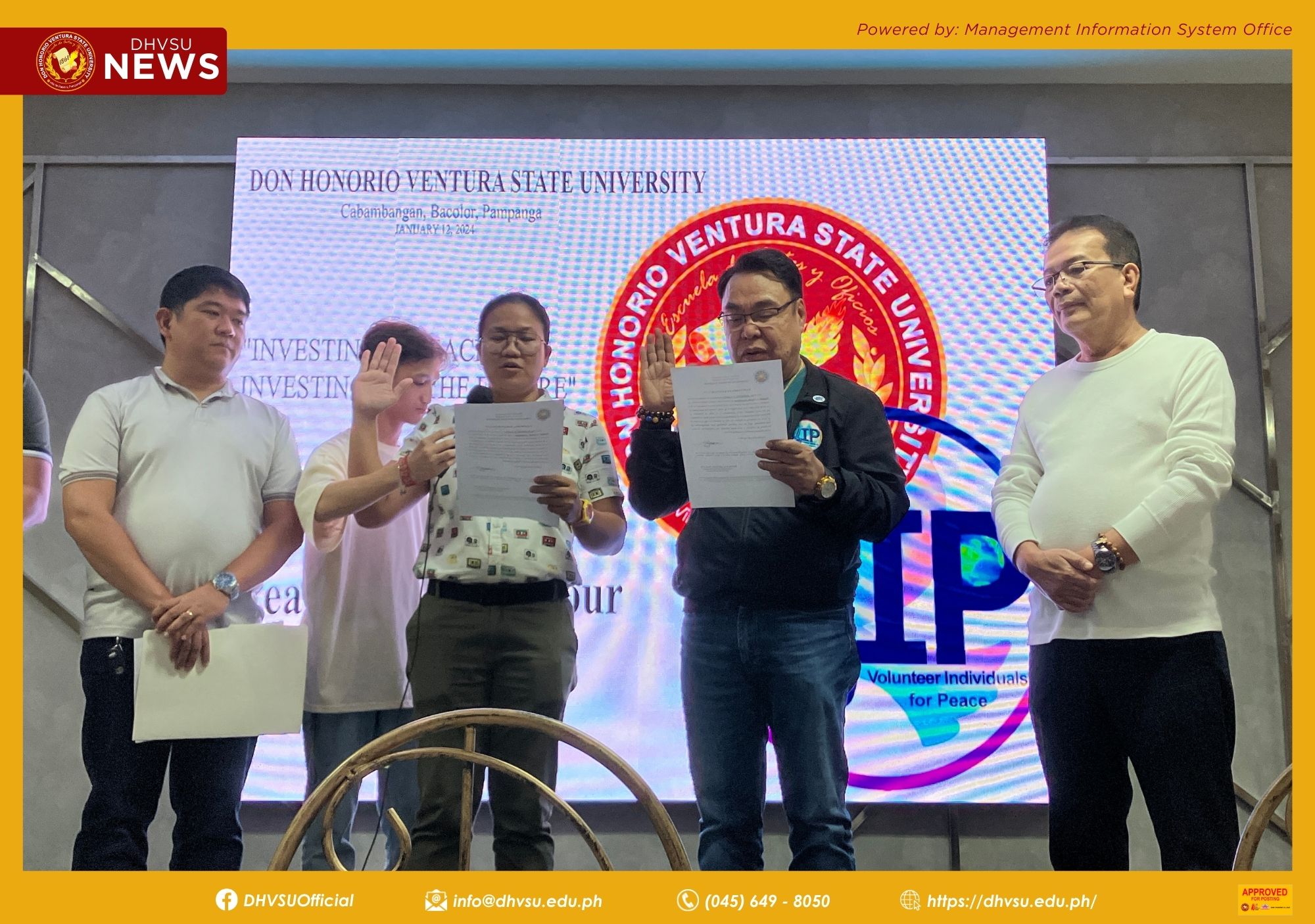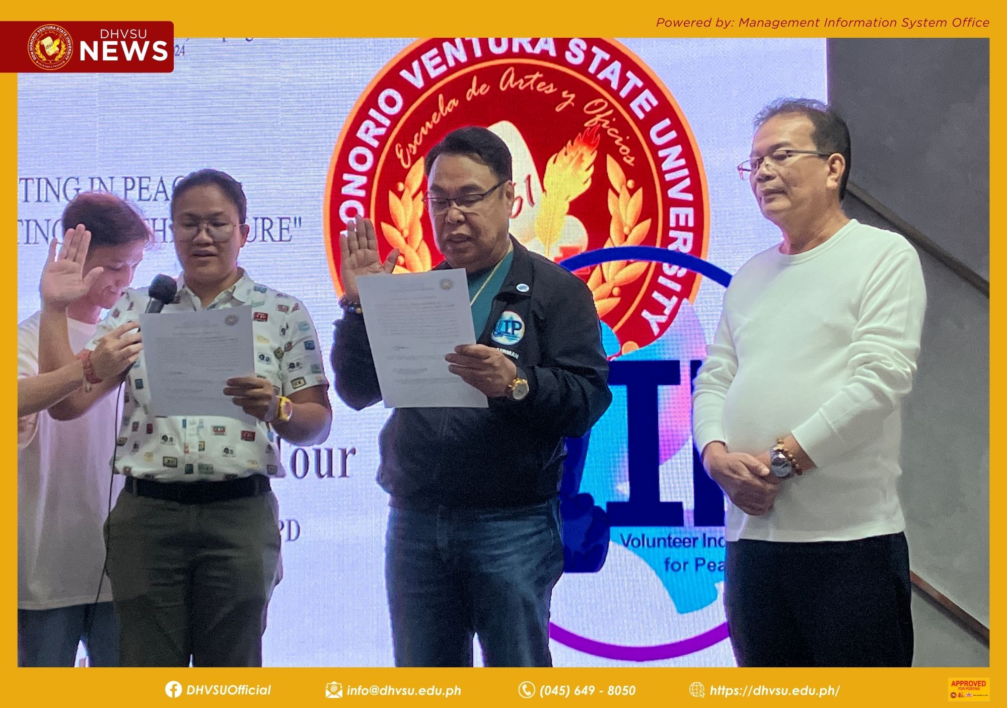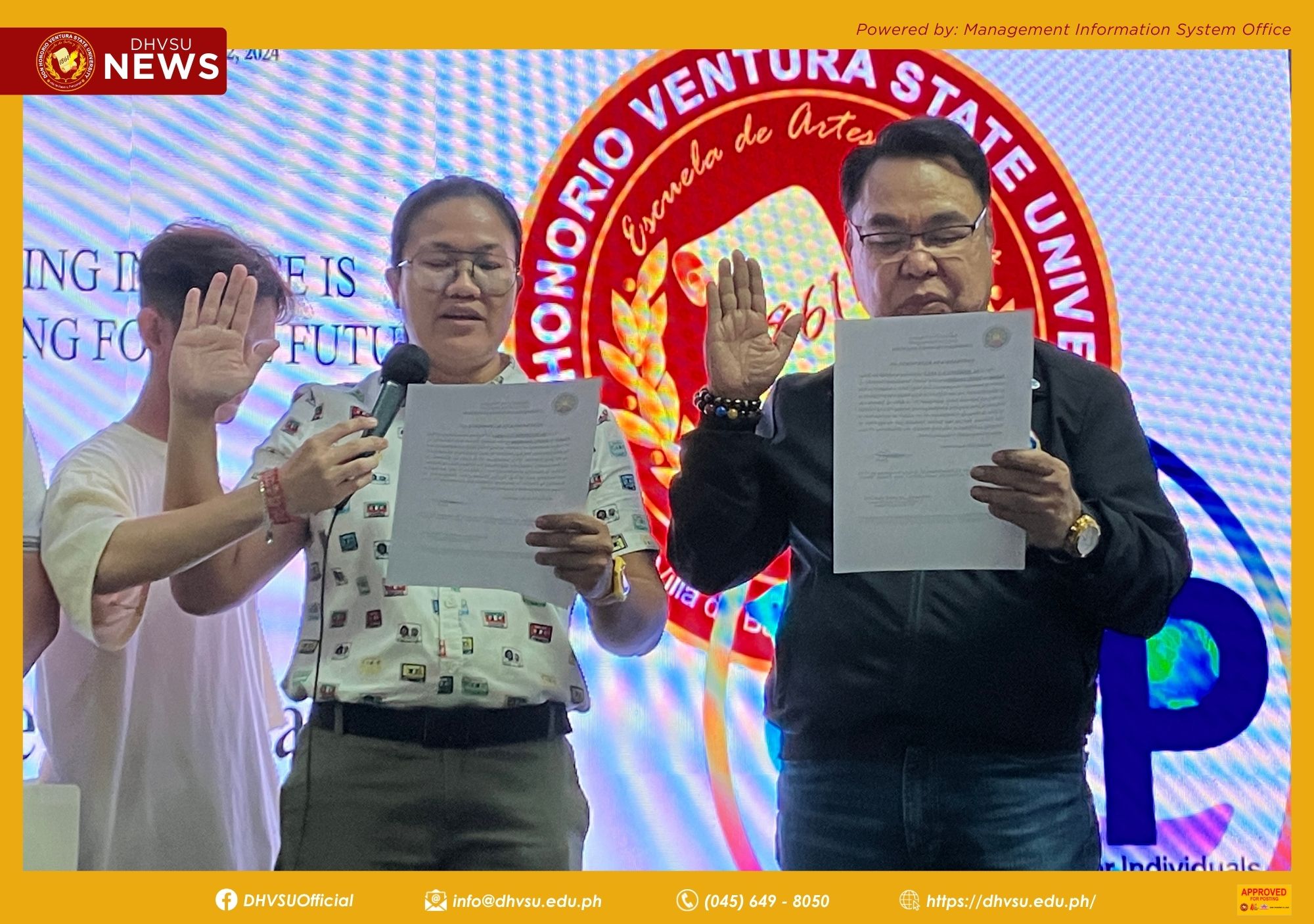 The oath-taking event was witnessed by the top management of DHVSU, led by Dr. Enrique Baking, the University President, along with Engr. Reden Hernandez, Vice President for Academic Affairs and concurrent OIC-Executive Vice President and OIC-Vice President for Administration and Finance; Dr. Ranie Canlas, Vice President for Research, Innovation, Training & Extension Services; Dr. Dolores Quiambao, Vice President for Student Affairs and Services; and the members of the administrative council.