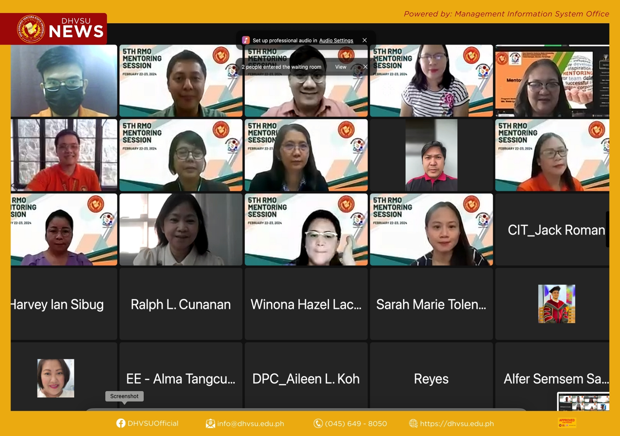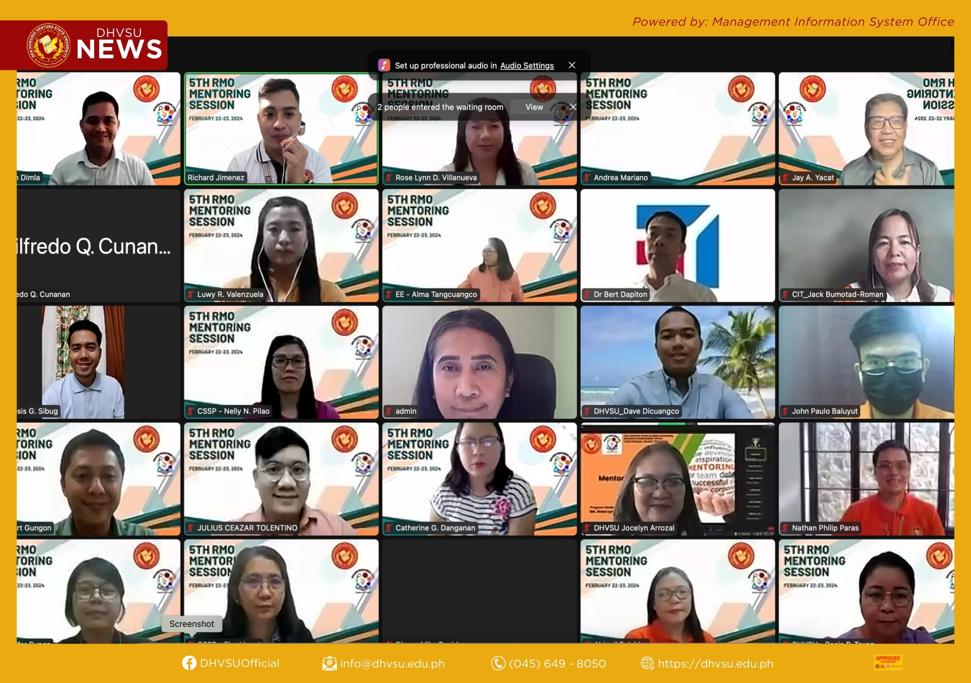 To guarantee the production of quality research outputs at Don Honorio Ventura State University (DHVSU), the Research Management Office (RMO) held its 5th online mentoring session on February 22- 23, 2024.
