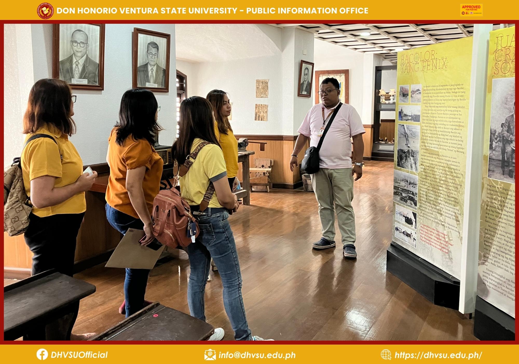 The benchmarking team received a warm welcome from Director Suzette Macaspac of the University Learning Resource Center and Director Rowell Cruz of the Office of Culture and Arts. Guiding them through the DHVSU museum and archives was Theo Niño Angelo Ortiz.
